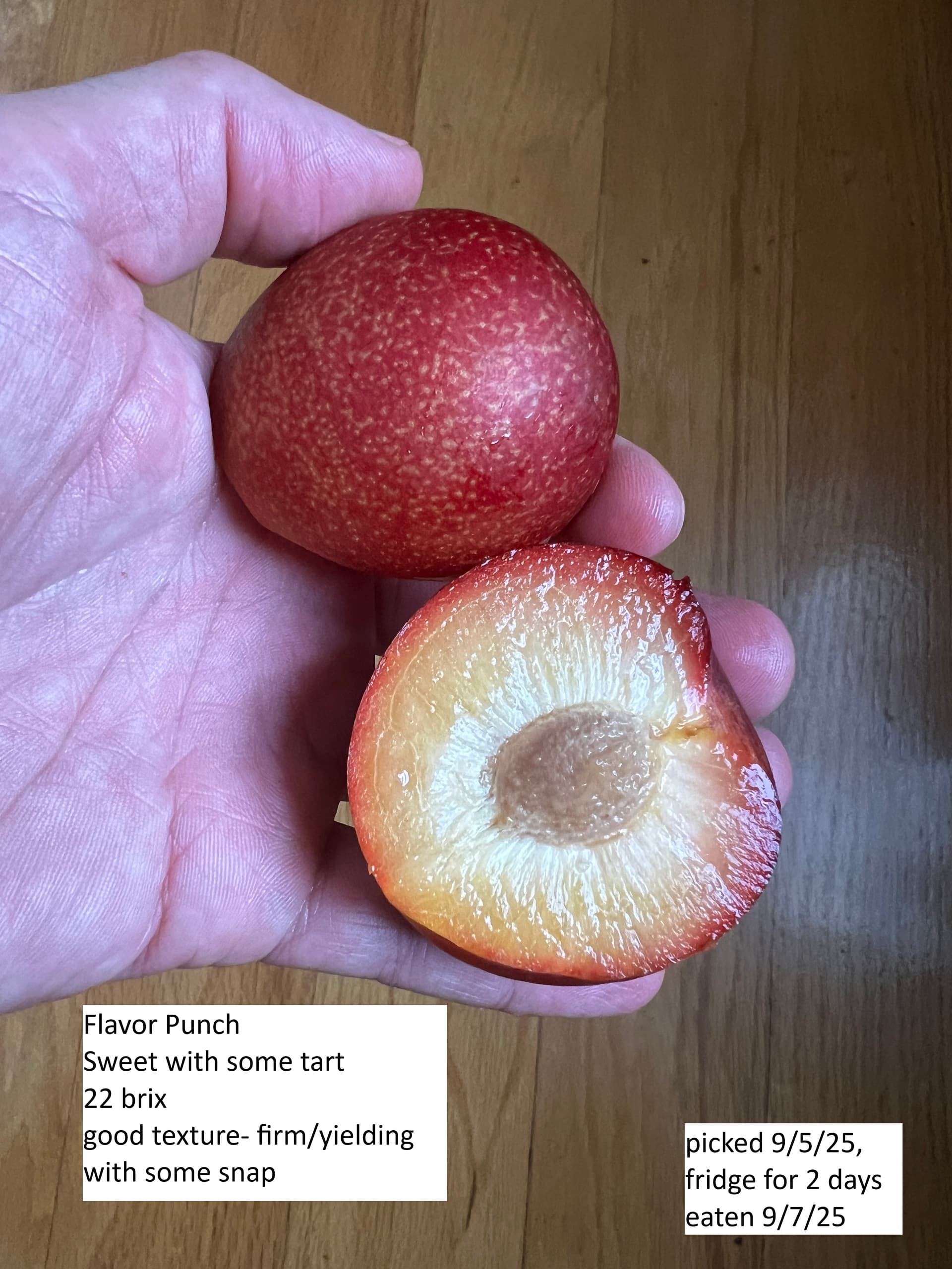 “Yellow-fleshed plum with red streaking under certain conditions.”