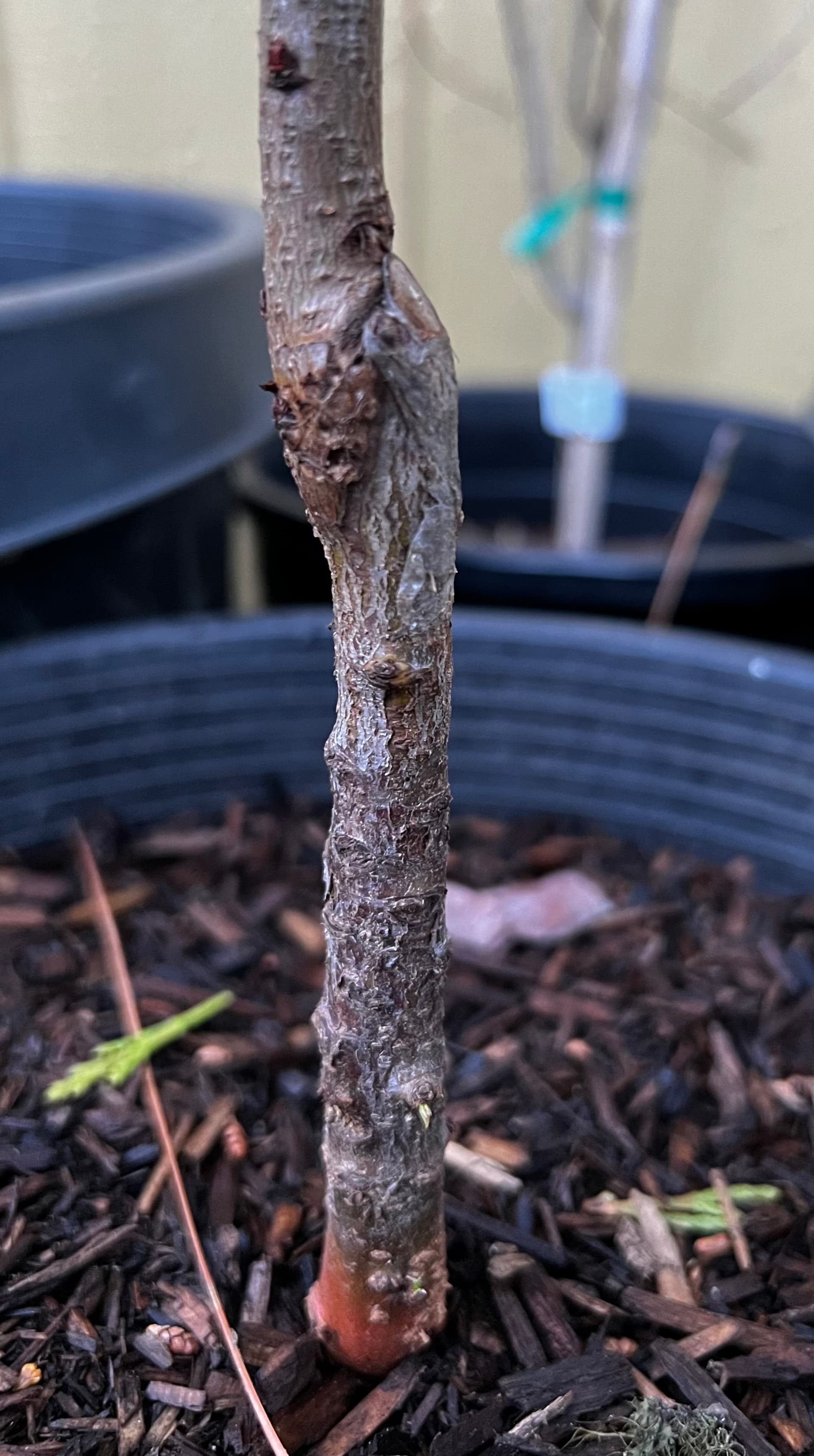 Big nursery use paint color to help label cultivars sometimes. Dave Wilson labels their cultivars with it. That said if it is a rootstock or they labeled it wrong from the start it does not help too much. It does not help that years later you may not even notice the spray paint. I don’t see the spray paint from the trees I bought in 2020 or 2021 anymore. The trees I got last year and this year must be from a different supplier than Dave Wilson as they appear to have no spray paint on them.