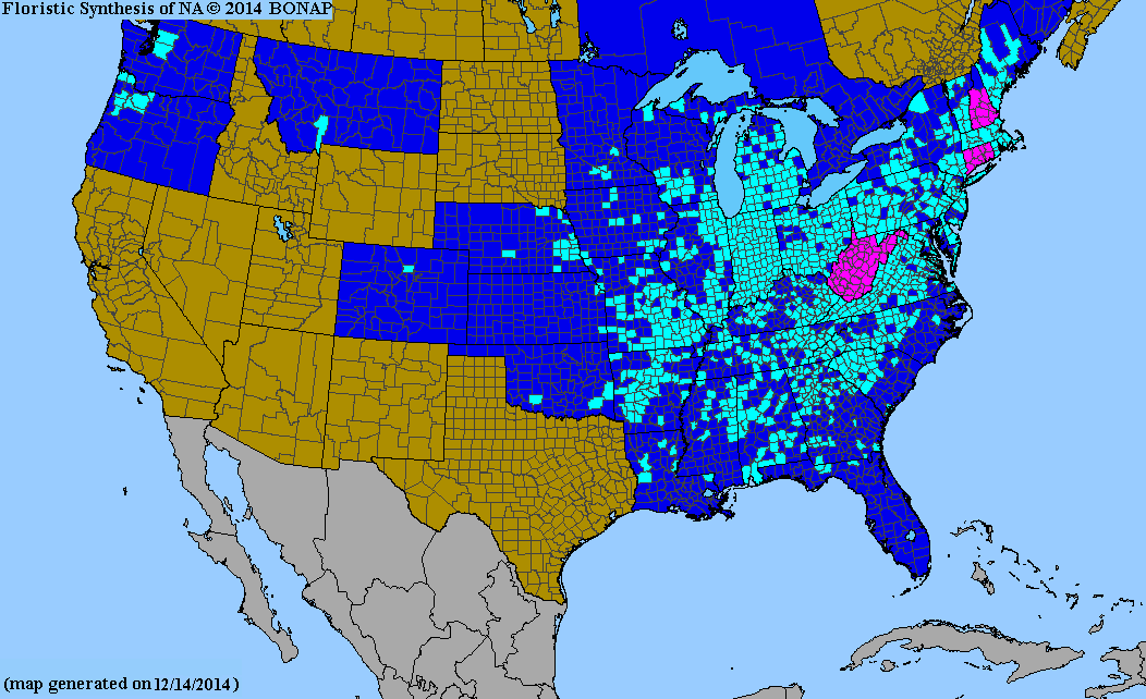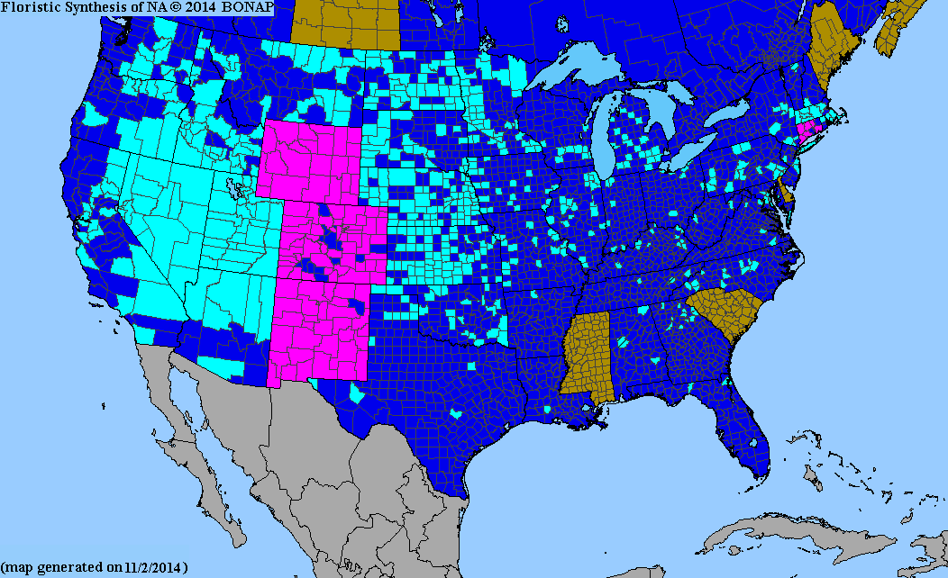 Looks like it would be less invasive in kansas (the teal oners are where its escaped cultivation, see near me its everywhere)