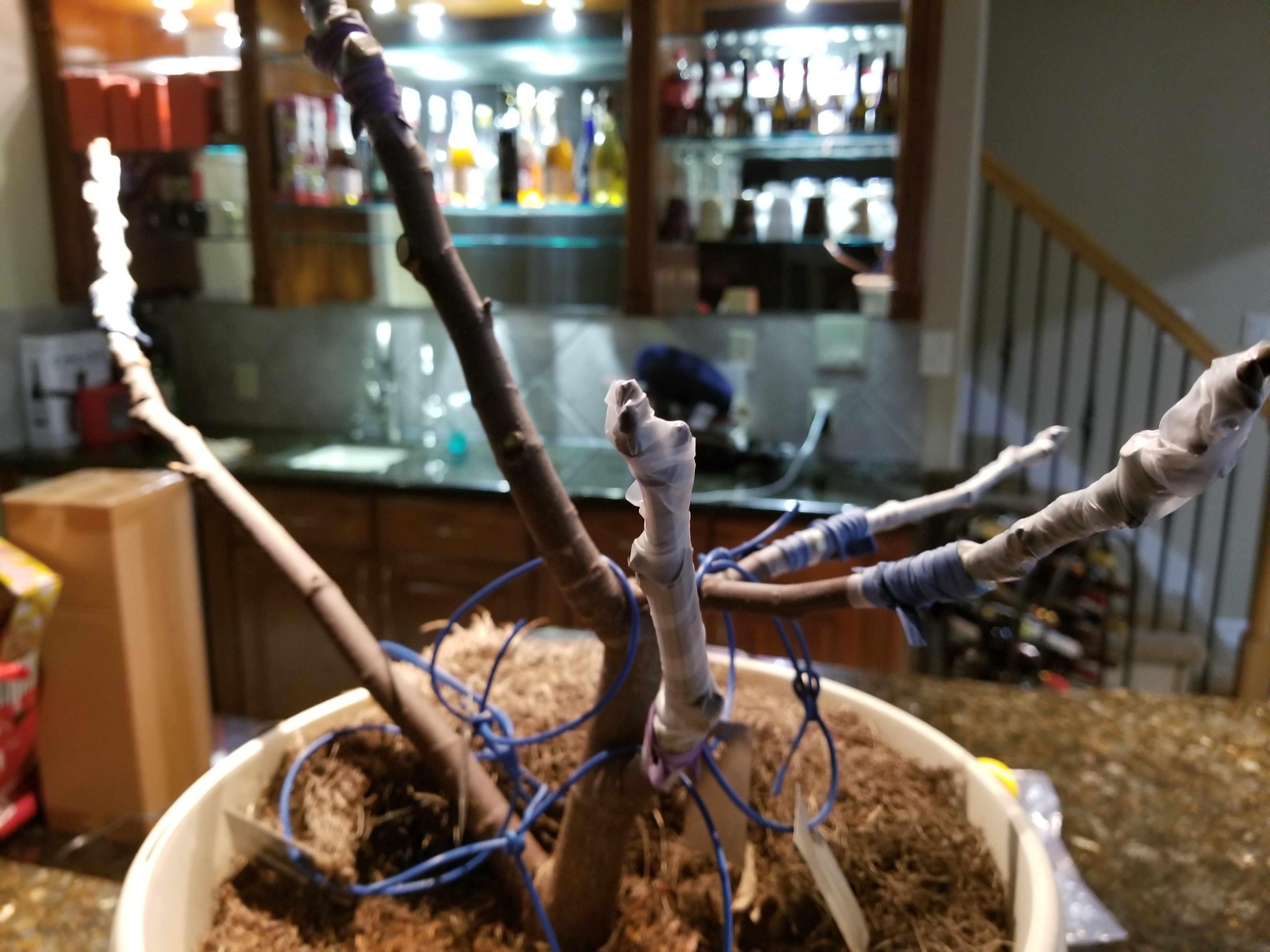 Tony is grafting them indoors so they will wake up and the sap will start moving and the grafts will heal.