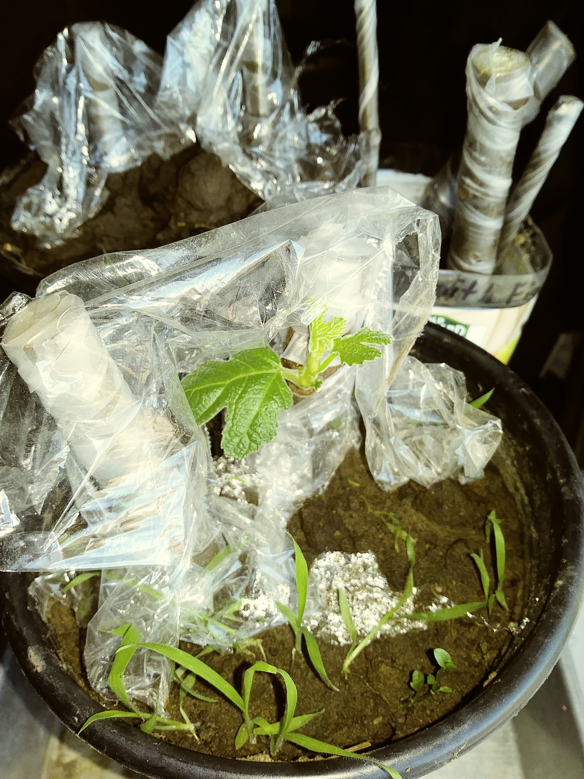 Note that the figs in the above pic are all different ages. There are also a couple small jujube seedlings, which are in the pots that appear empty in the pic (I said they are small…