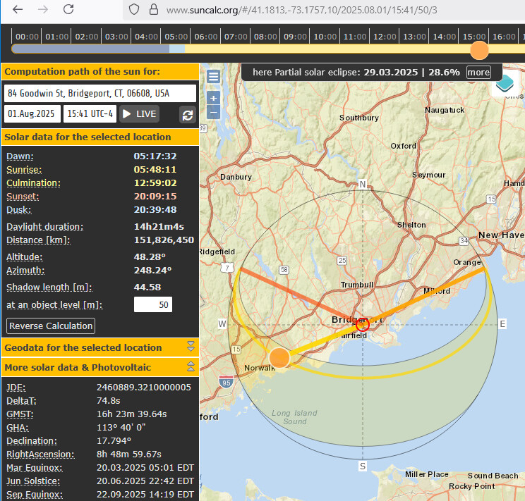 The 21 degree tilt on the property means that there is only 4 degrees difference between the fence line and where the sun comes up. So, first thing in the morning it might avoid the fence-line, but the sun is only 3-4 degrees above the horizon when it crosses the fence-line (and there are generally distant objects blocking those first few degrees). So, in your example, at 25.8 feet from the fence, the first light would be in the afternoon, after the sun passes the fence-line to the SW, on it’s way N. The fence-line continues far beyond the property, so the sun needs to get almost 21 degrees South of West, 249 deg, which I see happening around 3:45pm. From that point, until dusk, the only blockages would be my own plantings, the fence (about 7 degrees of blockage 1/3 of the way into the yard, cutting off the last hour), and distant trees/houses. So, maybe 3:45 to 7pm at best. It might work for gooseberries and some types of raspberries. I had some wild Wineberries produce with almost no Sun (maybe an hour or two in the morning when I was sleeping…), under an overhang on the North side of my house.