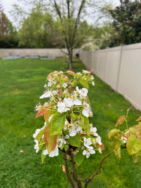 I’m relatively new to the forum, but have read through many past post about dealing with rust. I have two Asian pear trees and an apple tree which develop rust every season. I live in a relatively large development, so treatment is my only option. I’ve read previously, I should spray Immunox (which I have ready to go) after blossom drop. I’ve attached two pictures of one of my trees which has started to drop blossoms but there are still some hanging on.
