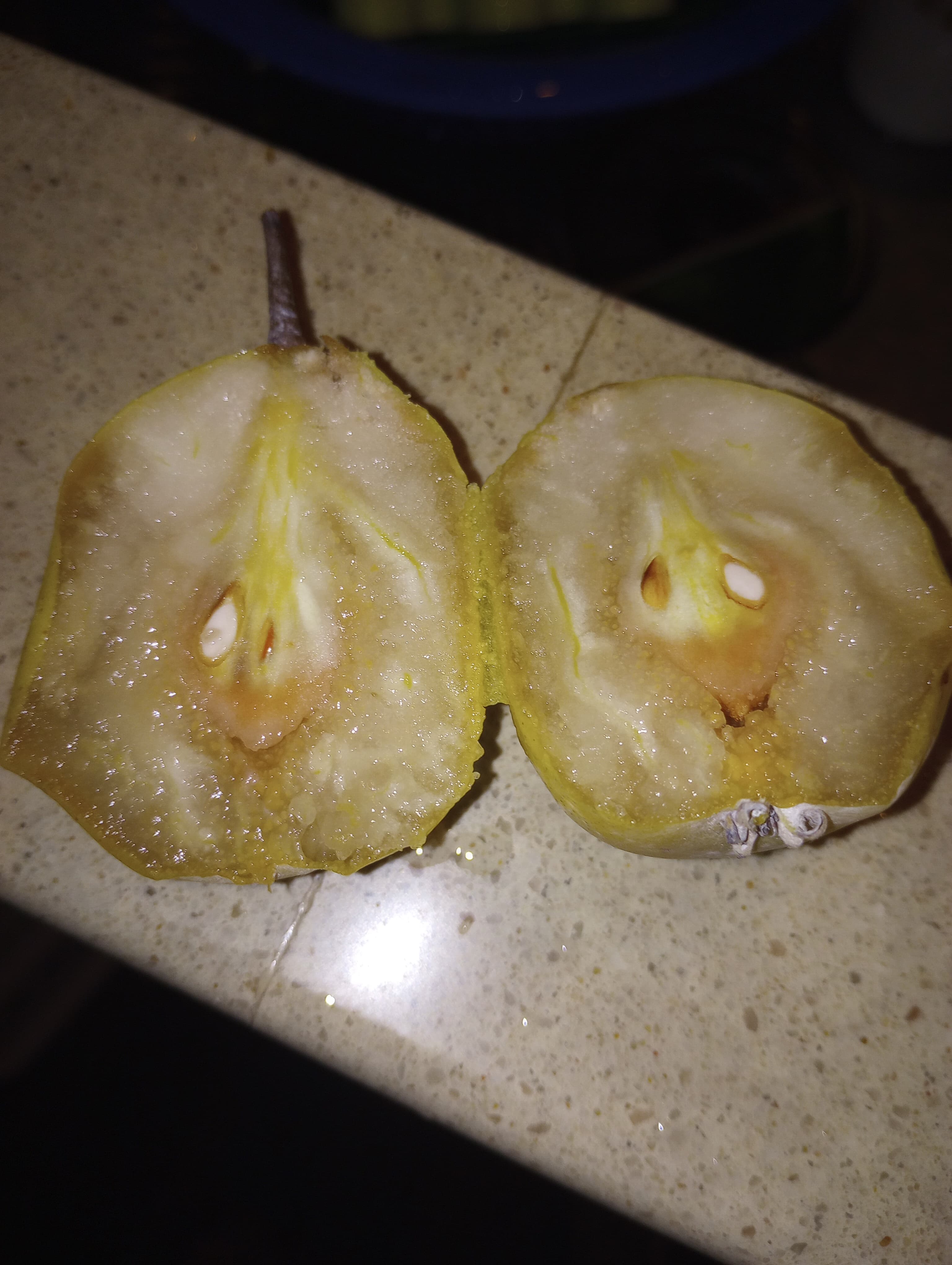 It has. It was a graft from another member, could be wrong, definitely seems the right size. If I was to squeeze those pears in the picture, they would smash into a fibrous goo. I tasted one, not sweet at all.