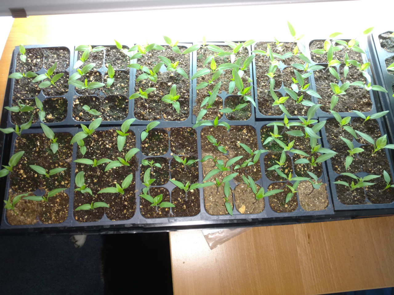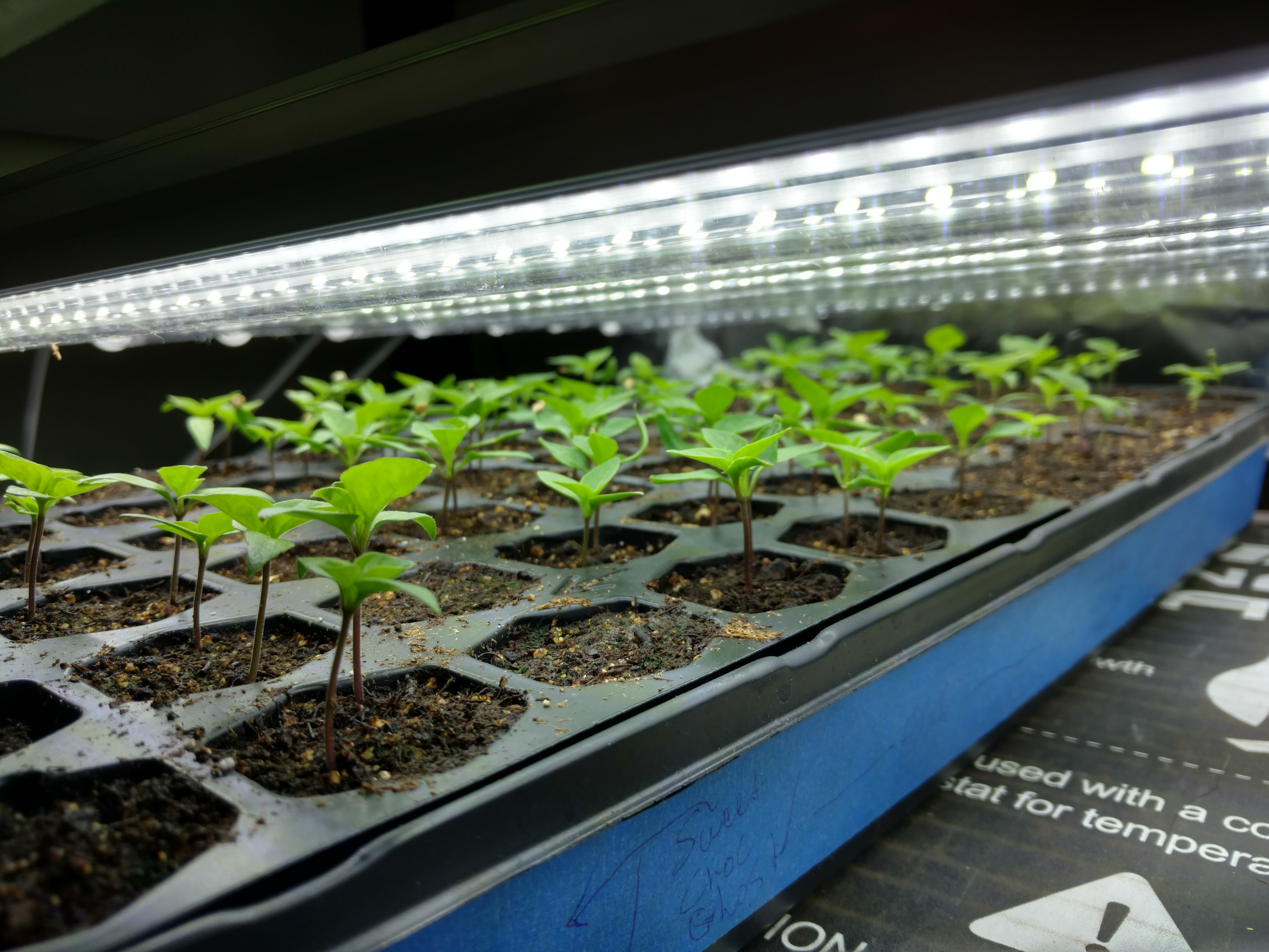 I started my C. Chinense peppers first- about 2 weeks ago. About 5 days for most in moist paper towels to get them sprouted, then 2, sometimes 3 seeds per cell. I’ll thin to 1 seedling in about a week. There are 2 rows with nothing yet, which are supposed to be Fatalii and Brown Bhutlah peppers - super hots. They are still in the paper towels and maybe just now starting to show a root. I had heard the super hots take longer to get going, but I hope they start soon or I’ll give up on them.