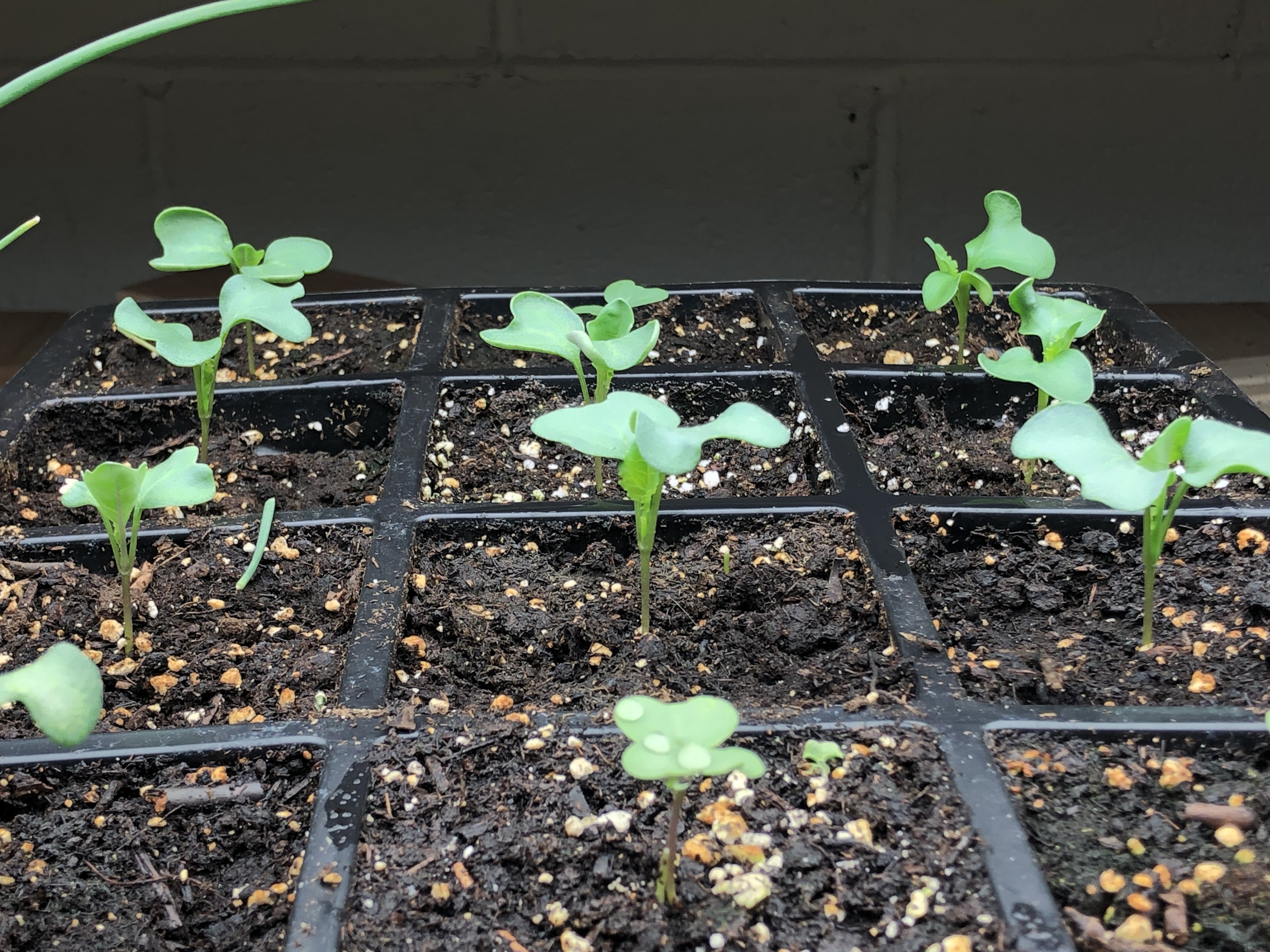 I had moved my brassicas out to start hardening them this past weekend. This year, for whatever reason, was the best for me in that they all looked healthy and I didn’t see that weird wilting I have had in the past. The plants were moved into larger cells, fertilized and kept in my unheated garage.