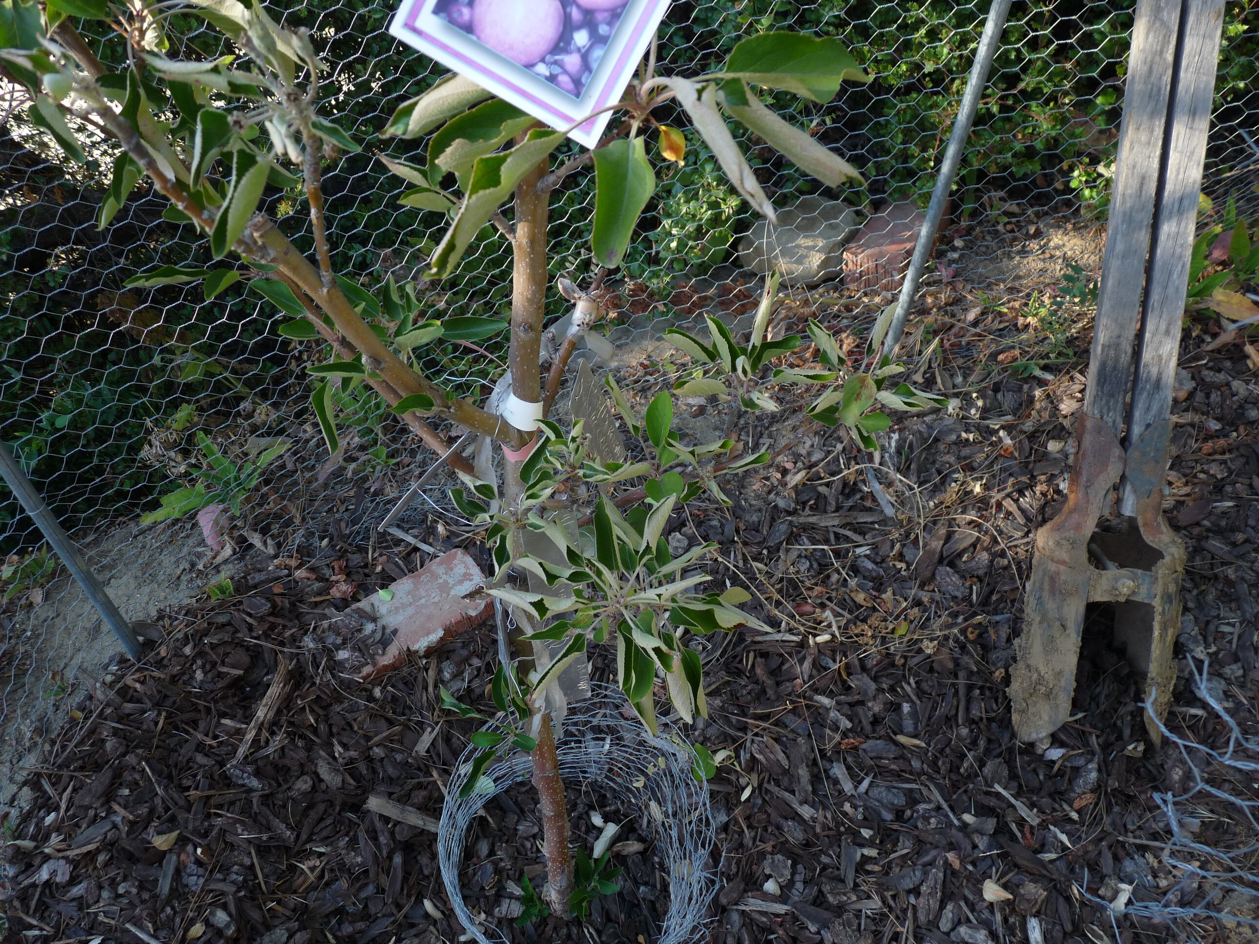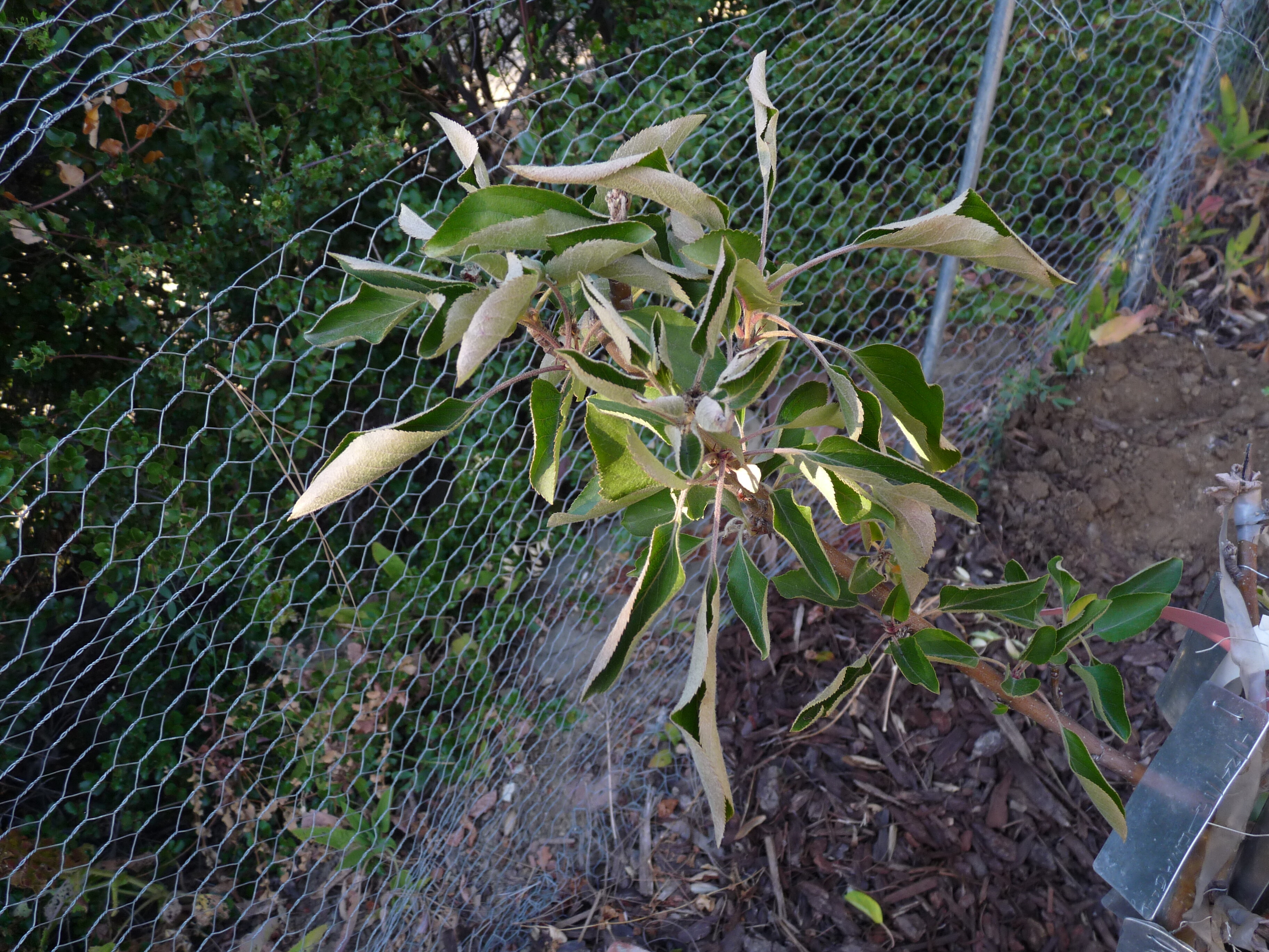 Two young apple trees on M111 have been looking bad for months and I just took a closer look and discovered that much of the bark on the lower trunk is cracking or peeling off. I’m not sure if I can save the trees (Gala and Pink Lady) but I’d like some opinions as to the cause.