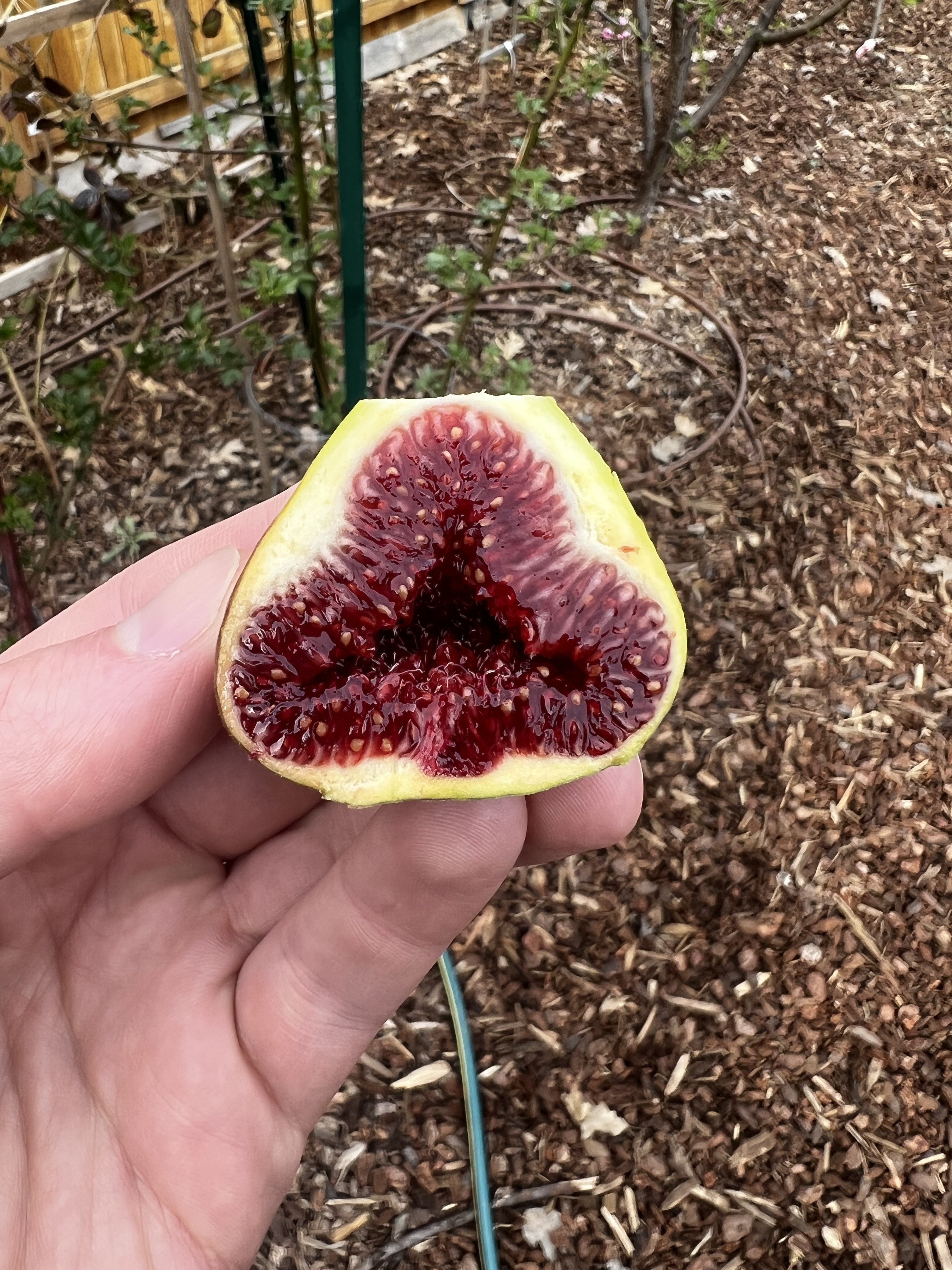 Galicia Negra fig. This is the first time I have tried it. Spectacular color. I don’t know if the picture shows it, but it is incredible dark, very striking. Flavor was very sweet, not much berry flavor IMO, but very tasty classic fig flavor.