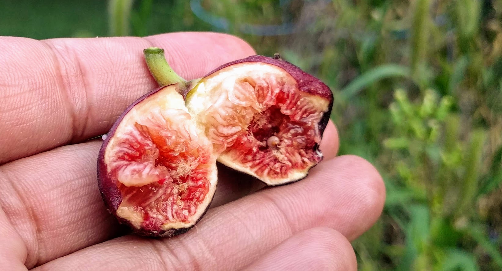 Yesterday I picked some figs from an unknown, ripens early, has a reddish interior. More like a honey fig. I like them. I just snapped a shot of the figs, not the interior. Already dried and stored.