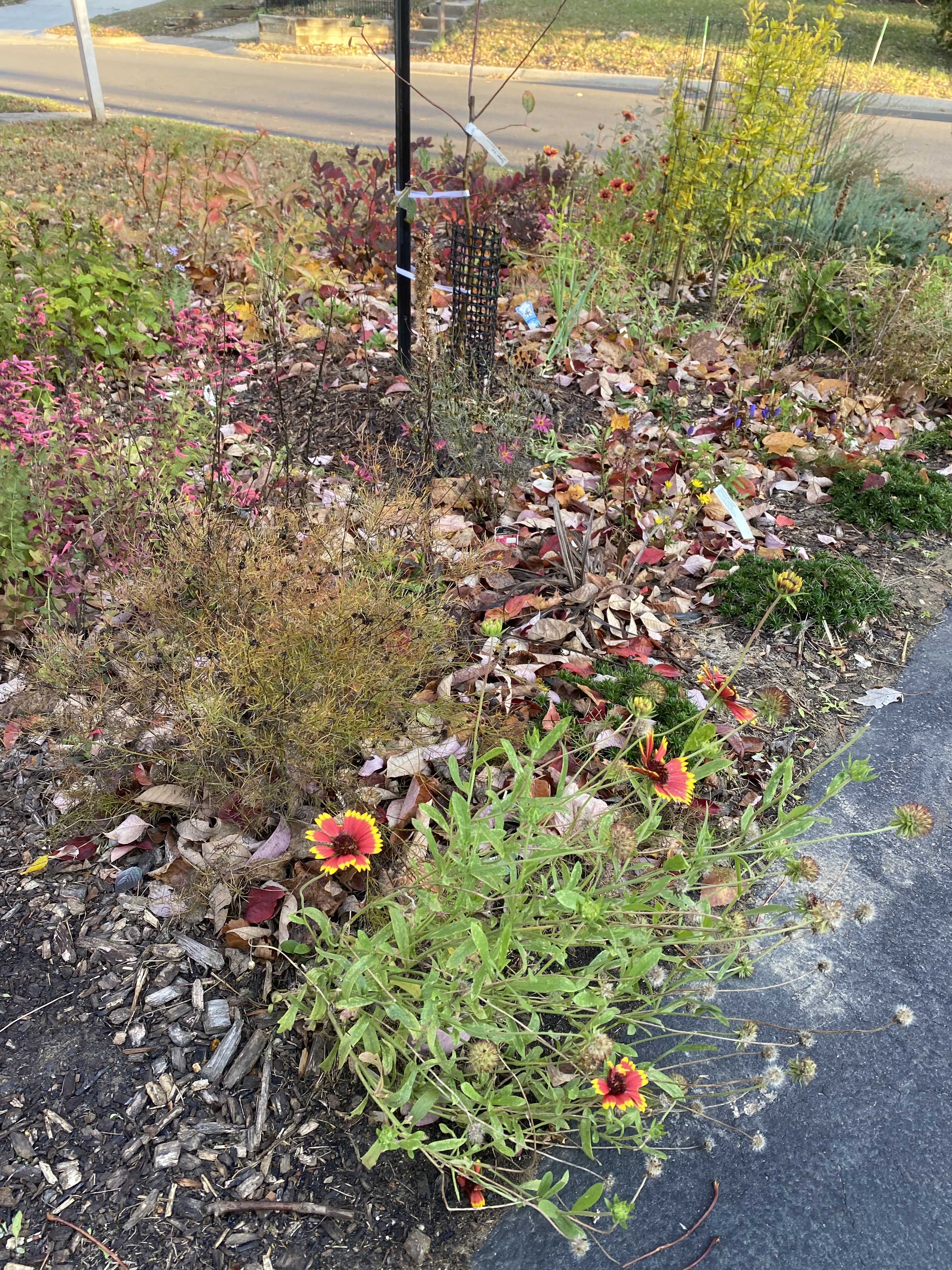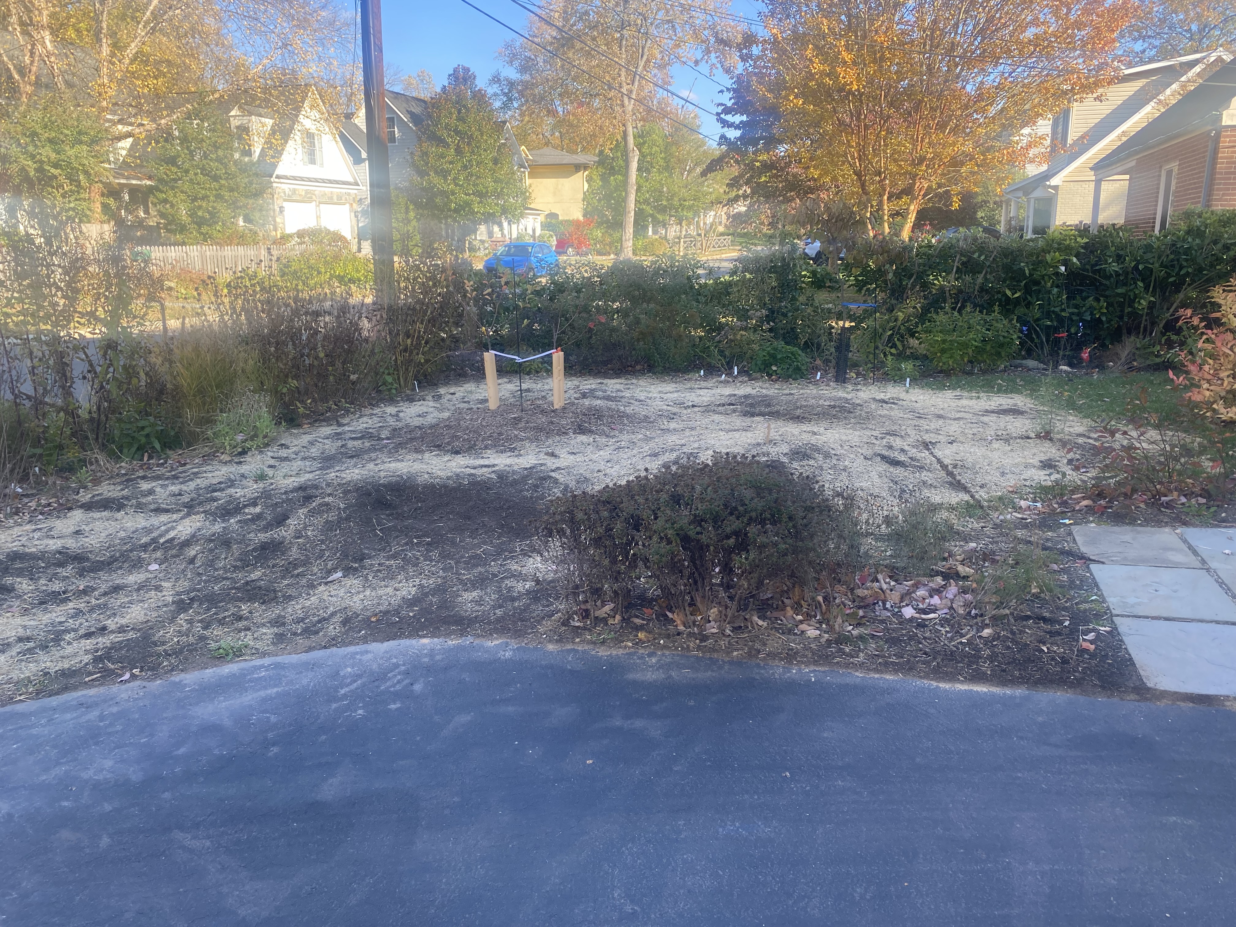 Driveway garden with a beautiful fall mess of colors and covered in the neighborās dogwood leaves. Triumph apple went in there and just moved bush Cherry as well. Pretty sure at this point that the neighboring house on this side has been sold to a family that will demo it and rebuild. So, the lovely dogwood will disappear. At least that will open up full day sun in one place when a house shadow will obliterate it in another. Iāve started working on plan B for the nectarines that involves moving one over 3ā (so ridiculous but thatās make it or break it on a tiny lot) and moving another to a different location. Iām hopefully Iāll be able to convince the new owners to plant wisely and not put some stupid large shade tree in a bad place. And, Iām hopefully I donāt eat the words I just typed outā¦