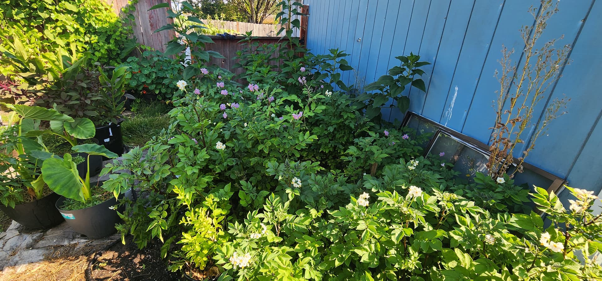 I keep forgetting to post pictures of my potato jungle. Unfortunately you cant see all the flowers that well. Included are also other photos I forgot to share here or there.