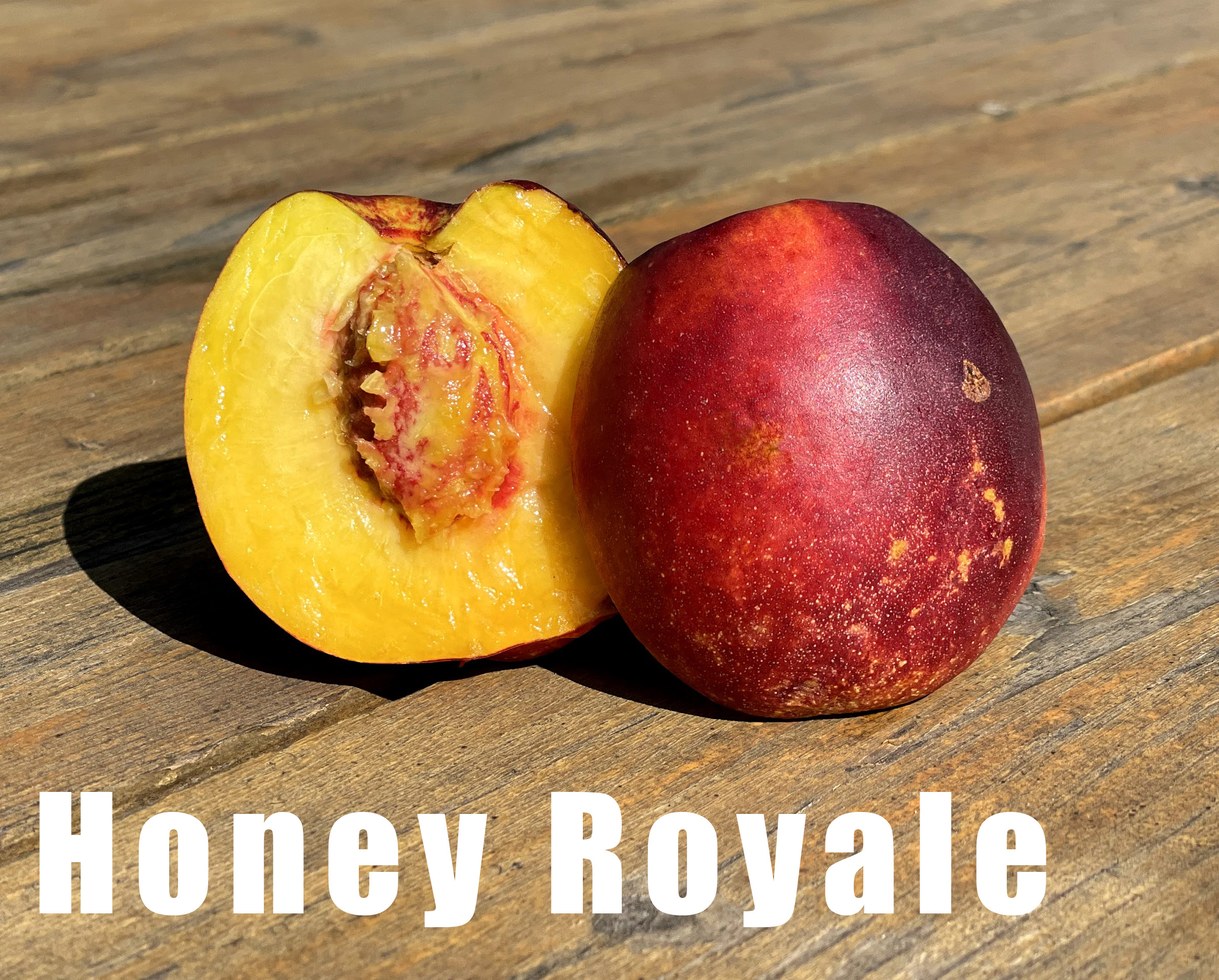 Are you sure this is Honey Royale? HR is free stone, and the photo is showing a cling or semi-cling nectarine. Honey Kist/Honey Blaze are cling and I expect them to be ripening around this time of the year in your climate.