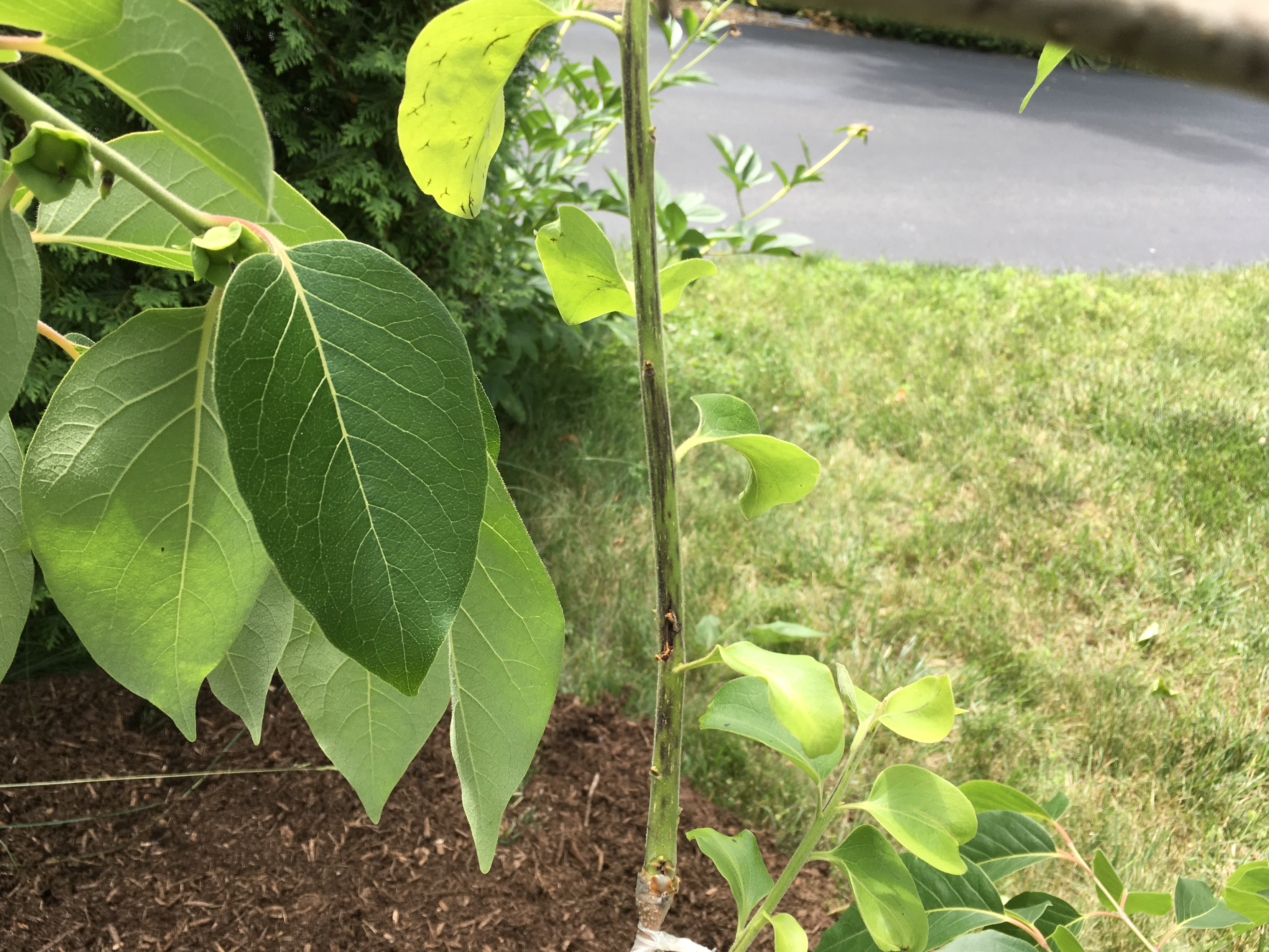 This year, I grafted two more JT-2 on the remaining Prok branches. That’s when this happens. I think I will remove both new grafts. Blackish streaks on persommon wood is never a good sign.