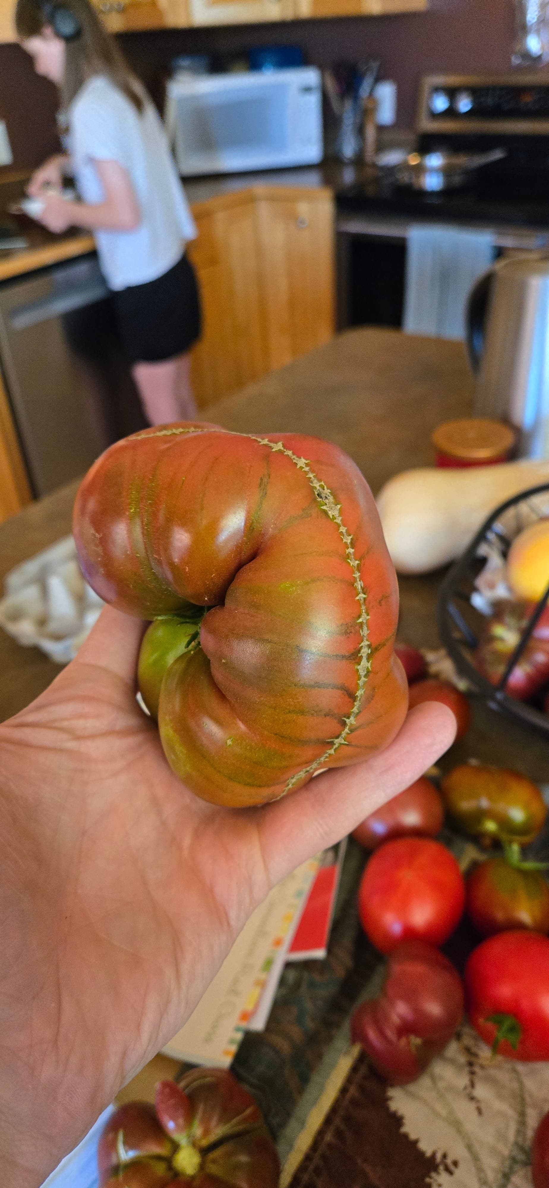 Anyone have any freaky fruits this year? Here’s a conjoined Hoople’s Antique Gold I picked recently.
