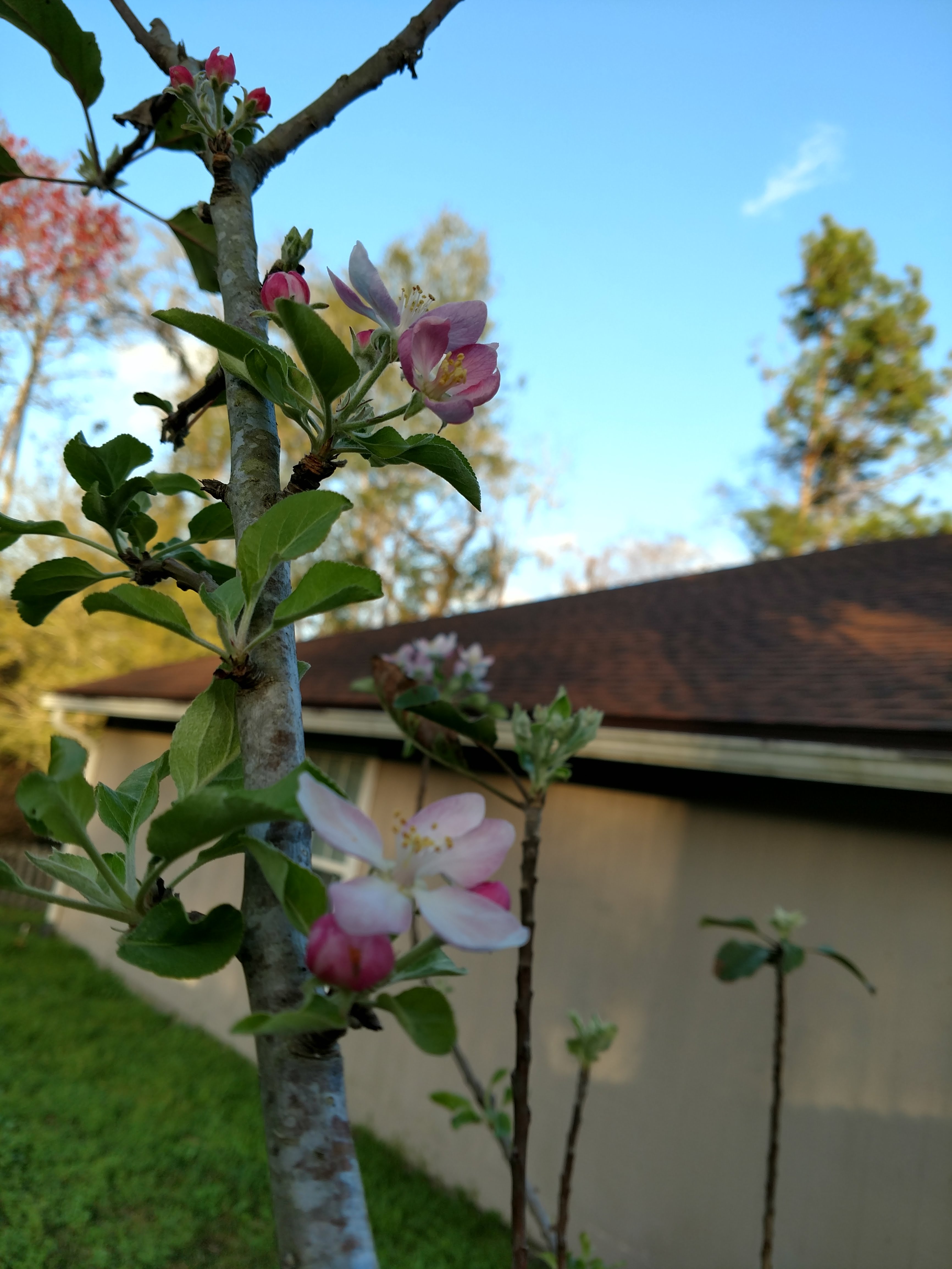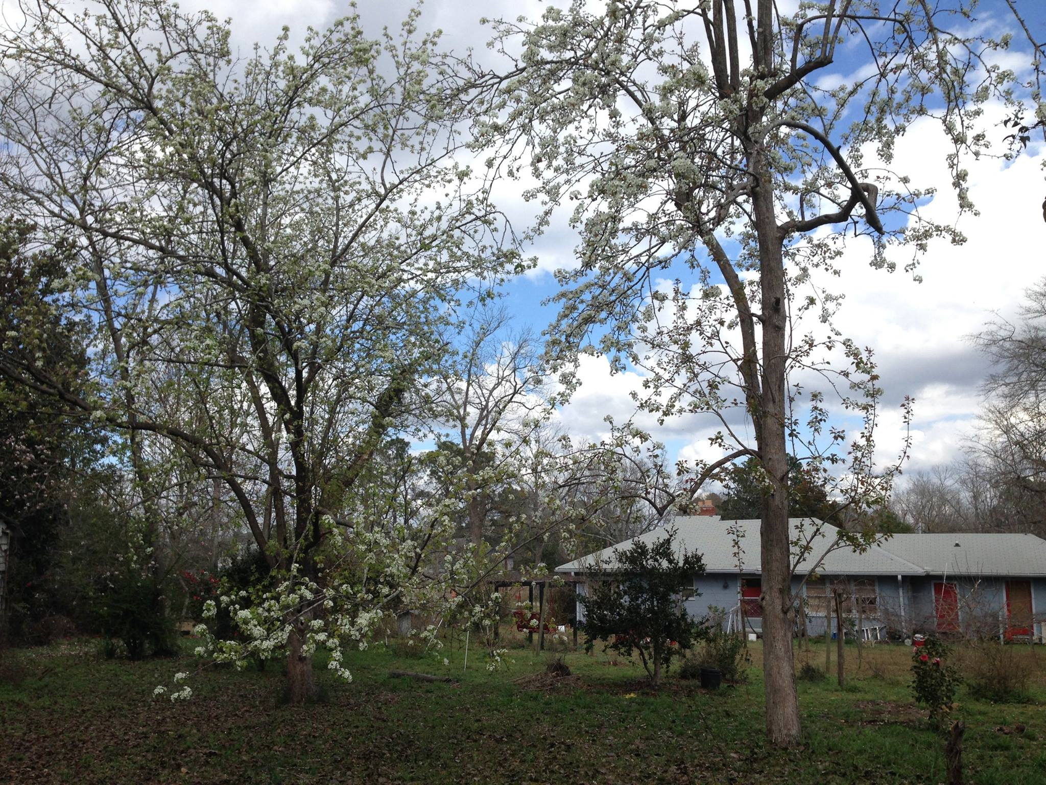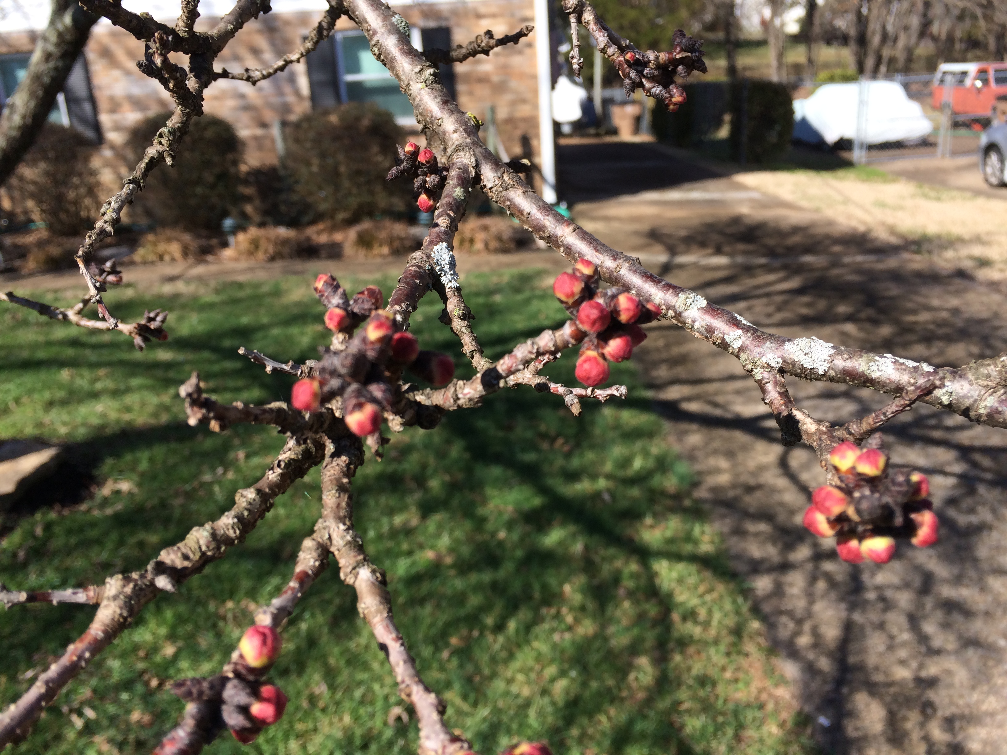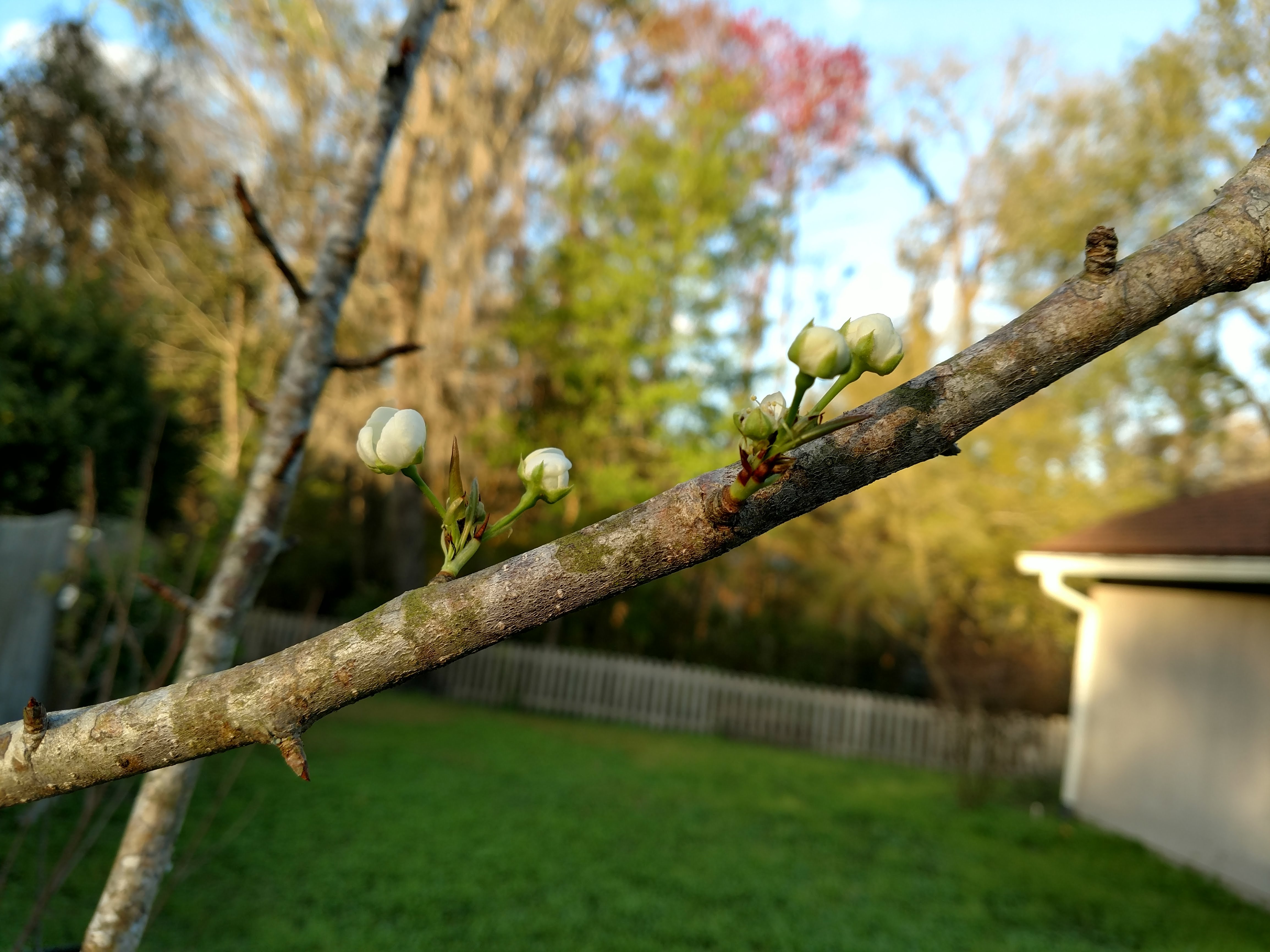 Seventies and 80s as far as the ten day forecast can see. This is the year of the grey, damp but very worm February. Lord, please protect my trees from disease! The climate is soooo different from when I was a kid. We always had at least some cold weather in February in the 70s, 80s, and early 90s. Looking at records getting over a thousand chilling hours was almost a given for Statesboro, Georgia until this decade. If weather stays as predicted, we likely won’t break 900 hours this year even with the cool but certainly not record breaking January. That means, counting this winter we broke 1000 hours three times in the past 8 winters. Anyway, Winnie is in full bloom now. As usually Granny Durden is a little behind with a few open flowers. Southern Bartlett and Acer’s Home will have some flowers open by the end of the day tomorrow. I imagine.