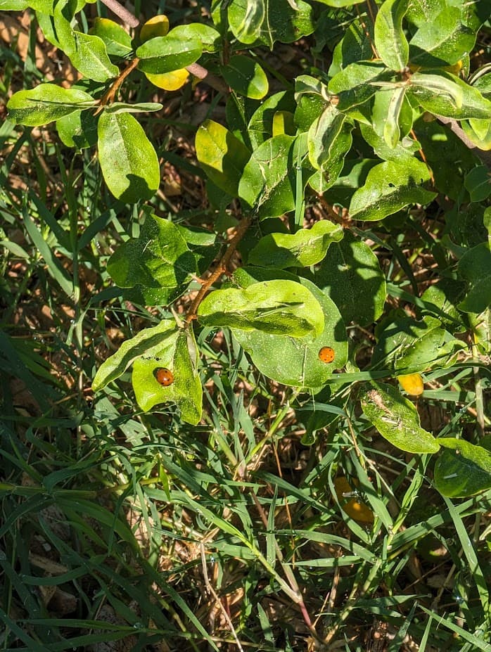 I panted 2 tilamook goumis from Whitman farms last summer. they both seemed to do well. this year they both flowered and looked the same to start but since then one of them has held fruit and has grown to at least twice its original size and the other one remains small and stunted with some yellowing leaves (and dropped all of its flowers). both goumis are planted about 15 feet apart. I also noticed the other day that the stunted one was covered in lady bugs. I’m wondering if it has some infestation of ladybug prey that is impacting its growth. any thoughts here?