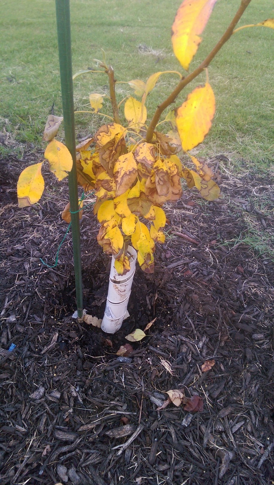 By now the leaves should be completely dried on the tree and intact. In fact you should not be able to readily dislodge any part of them if it is Texas Root Rot (TRR) (aka Cotton RR and Ozonium).