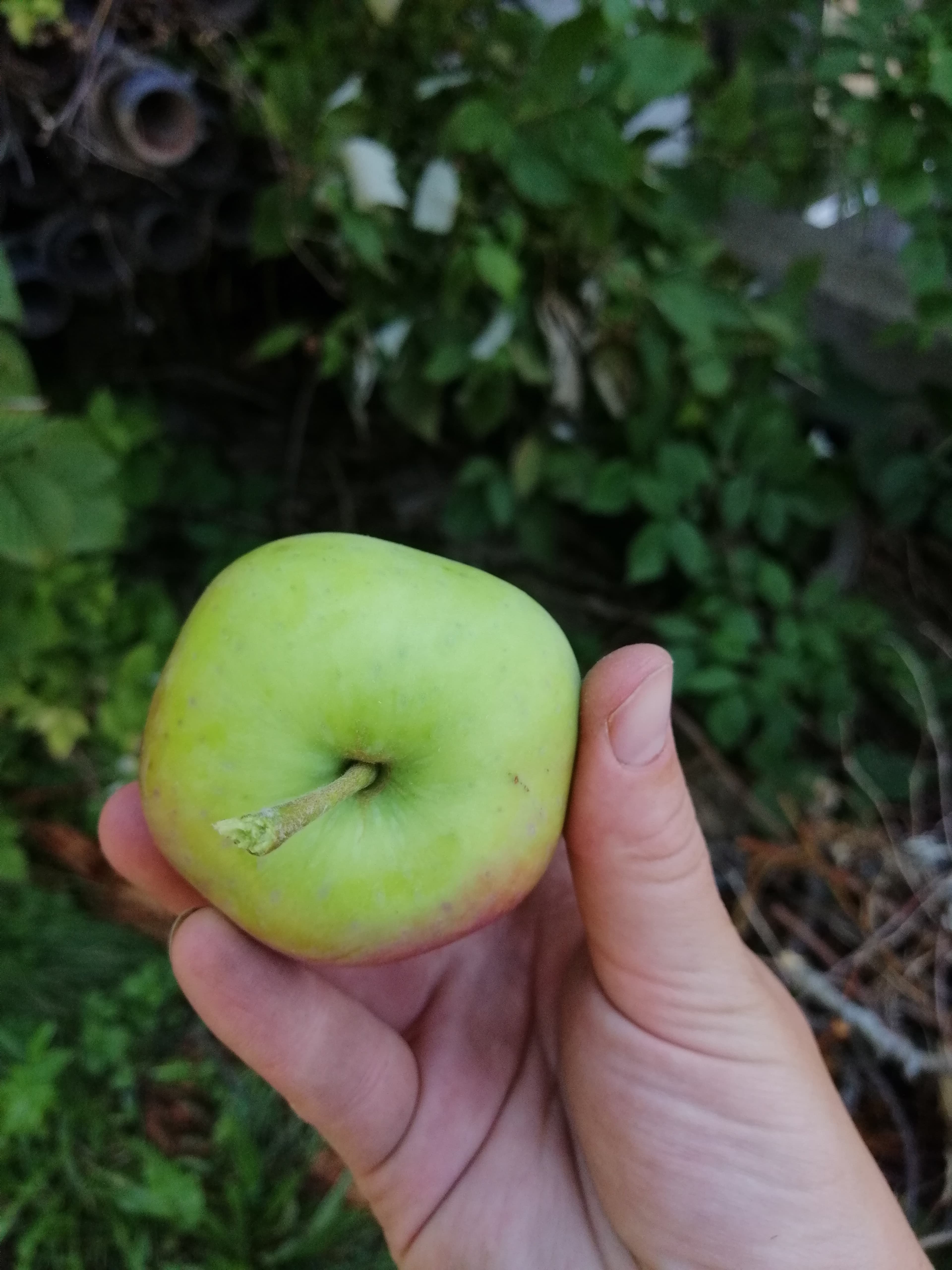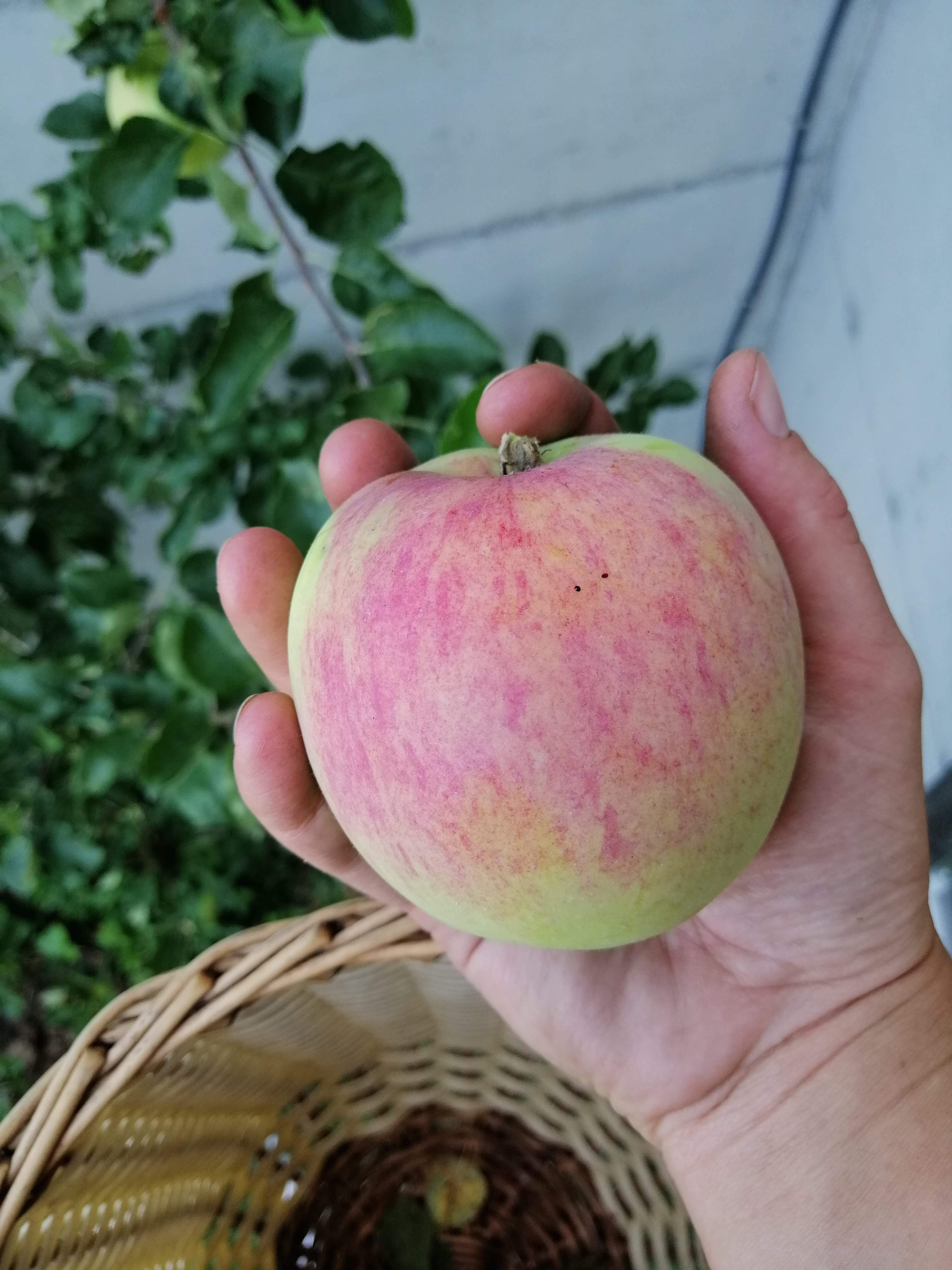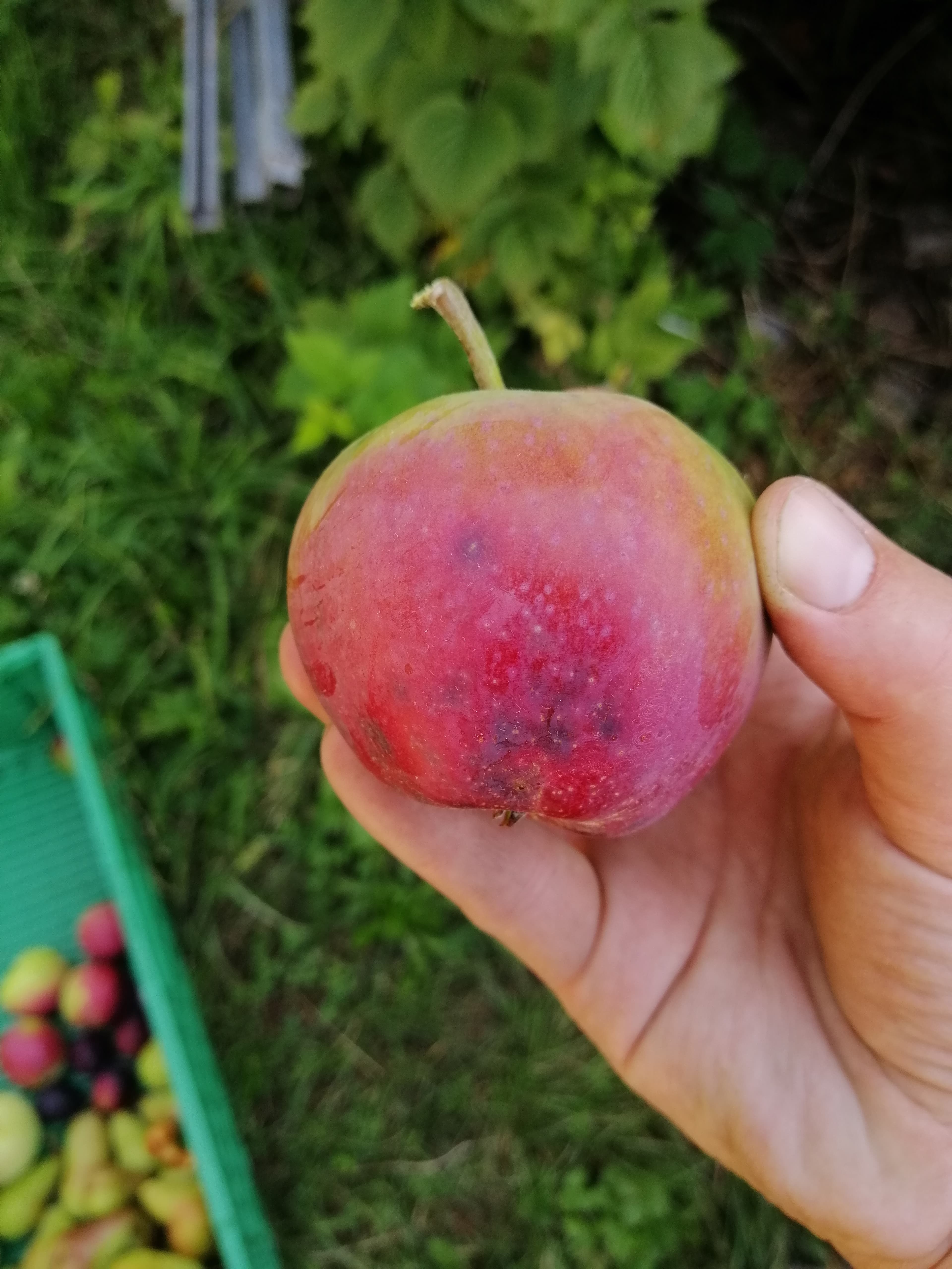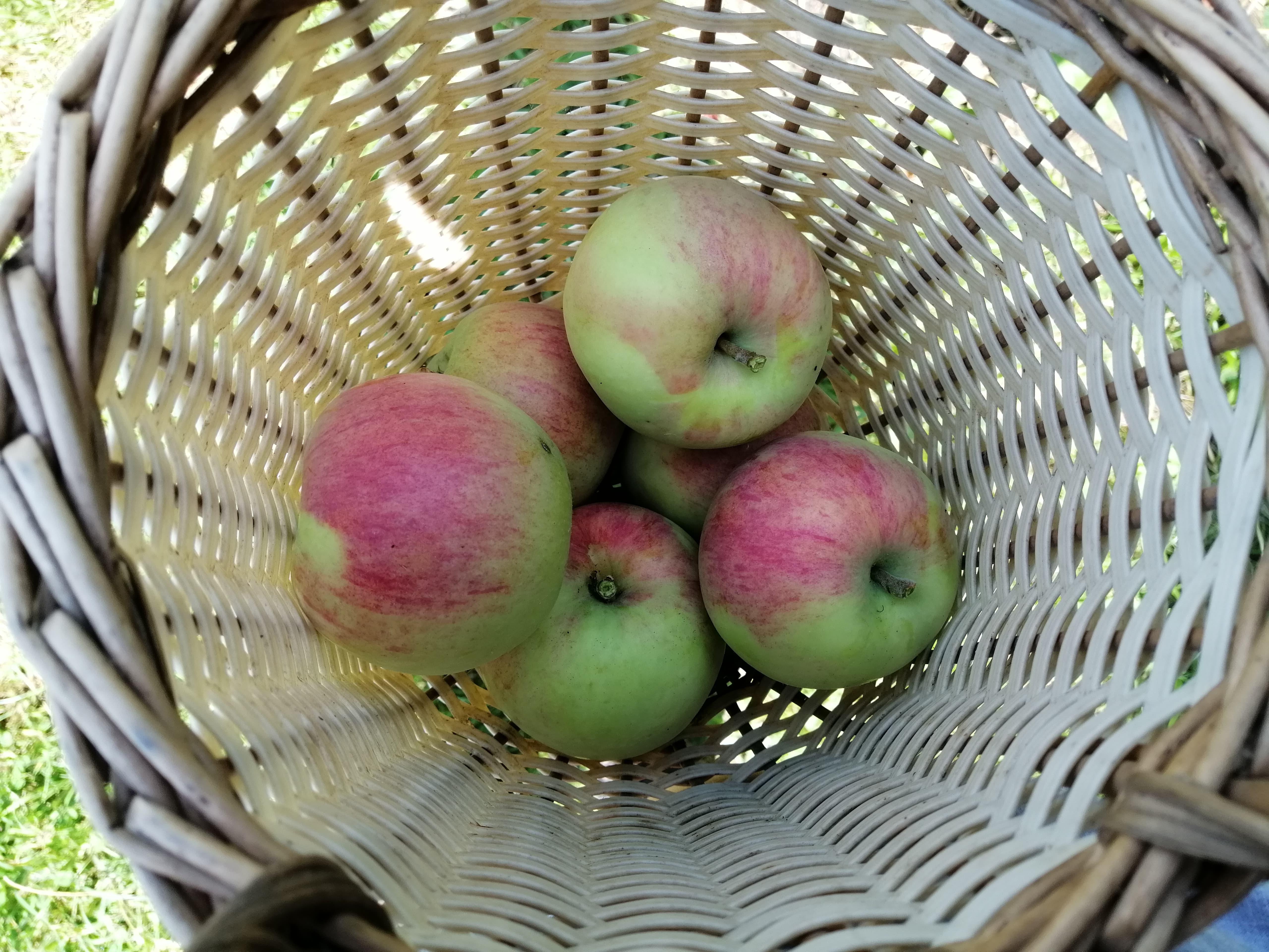 Today, on the 28. July we picked some of the Piros and Pfirsichroter Sommerapfel. Of these two, I definitely like the Piros better. It has the crunchier texture and the thinner skin. Additionally, the fruit is bigger and the tree healthier. (The Pfirsichroter Sommerapfel has often had mildew in the last few years)