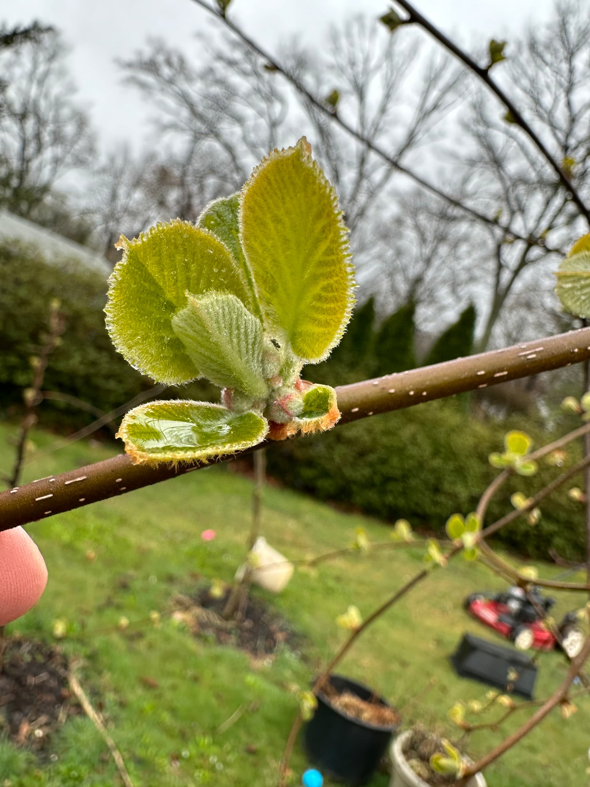 There are several female yellow kiwi available, but no good tet males until recently. Many Sungold seedlings are starting to bloom for people. Here is one that I have that has been completely hardy. I brought in a few cuttings before the 23F last Tuesday to make sure I get to see the flowers. The vines got hammered but I think maybe 50% of the buds survived. This 3rd year seedling was covered with buds before the freeze. It’s probably male, but I’ll know for sure in a few days.