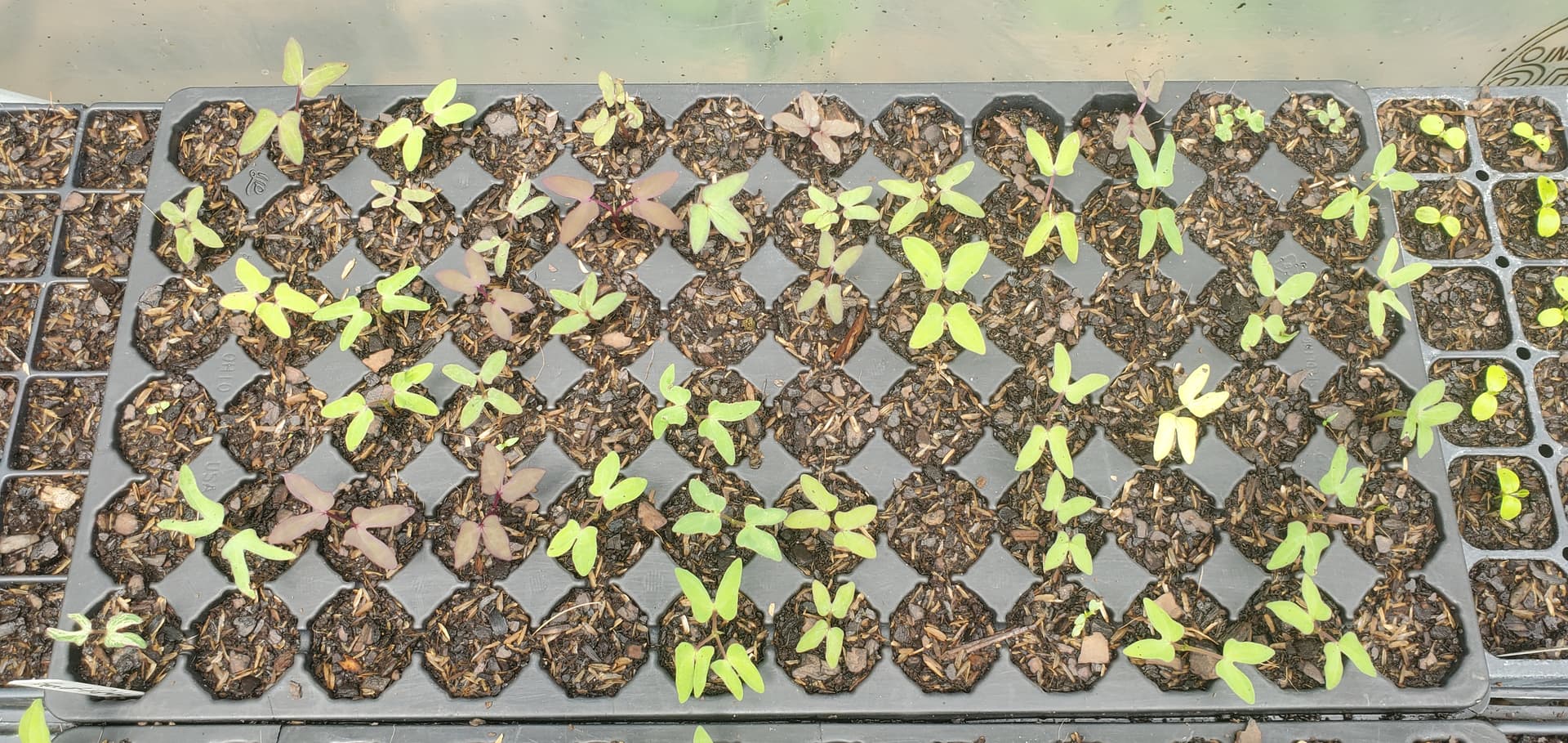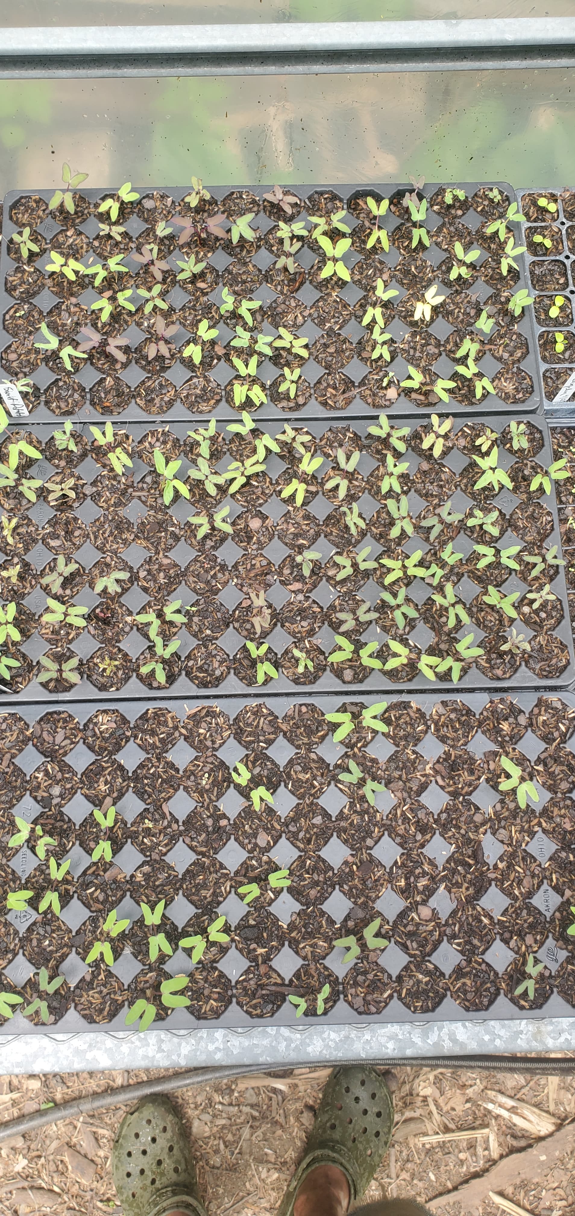 Unfortunately I didn’t get my greenhouse built until April, so I didn’t get my sweet potato seeds started until then, but it’s still a huge improvement over previous years where I would germinate them in a flat outside. They germinated pretty well… 30-75%. Weirdly, my seeds from 2022 came up the easiest (75%), followed by 2023 (50%), and lowest germination (the 30%) from the 2024 seeds. I wonder if there are germination inhibitors which wear away in storage over time.