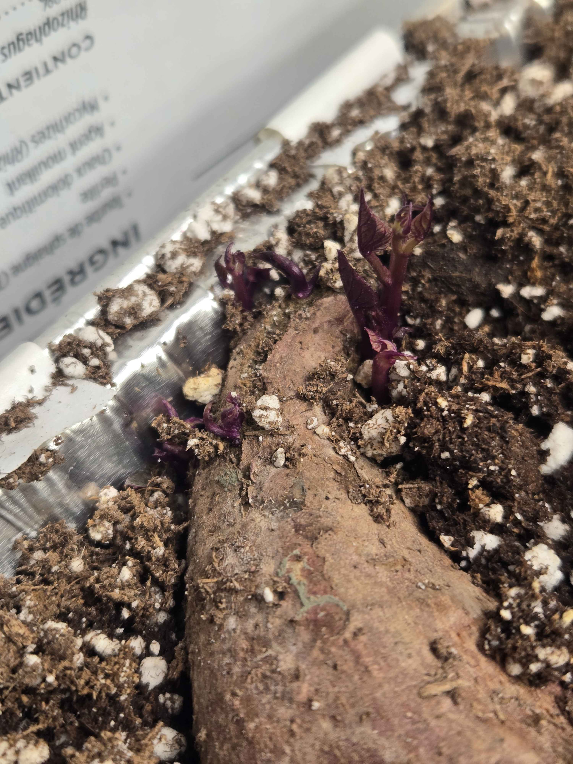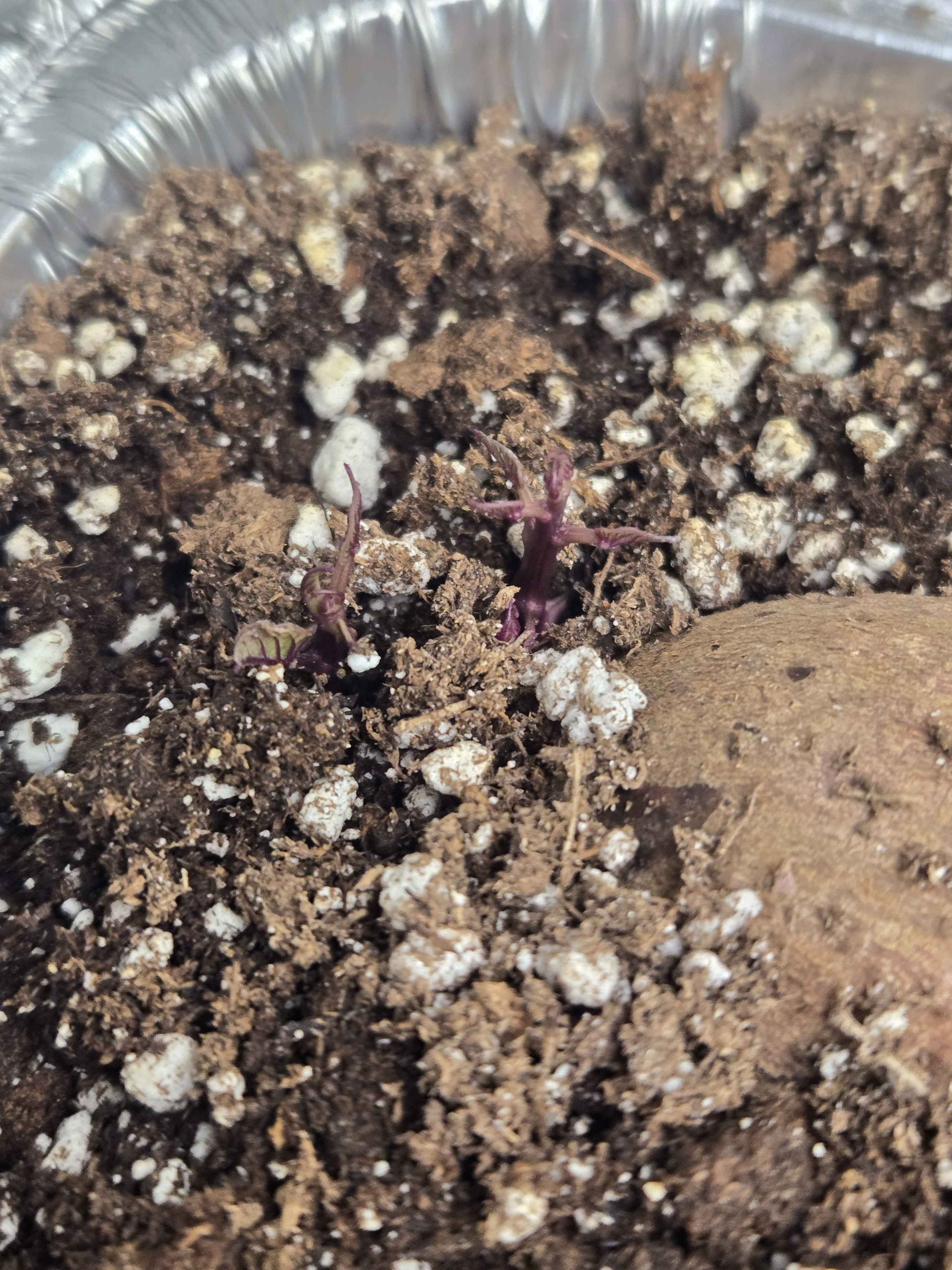 3/6 of my sweet taters from the store have started sprouting. looks like “korean” and “japanese” which were both purple skinned and white fleshed have some purpleish leaves. I’m not finding many of those murasaki style sweet potatoes with purple leaves, wonder what they are.