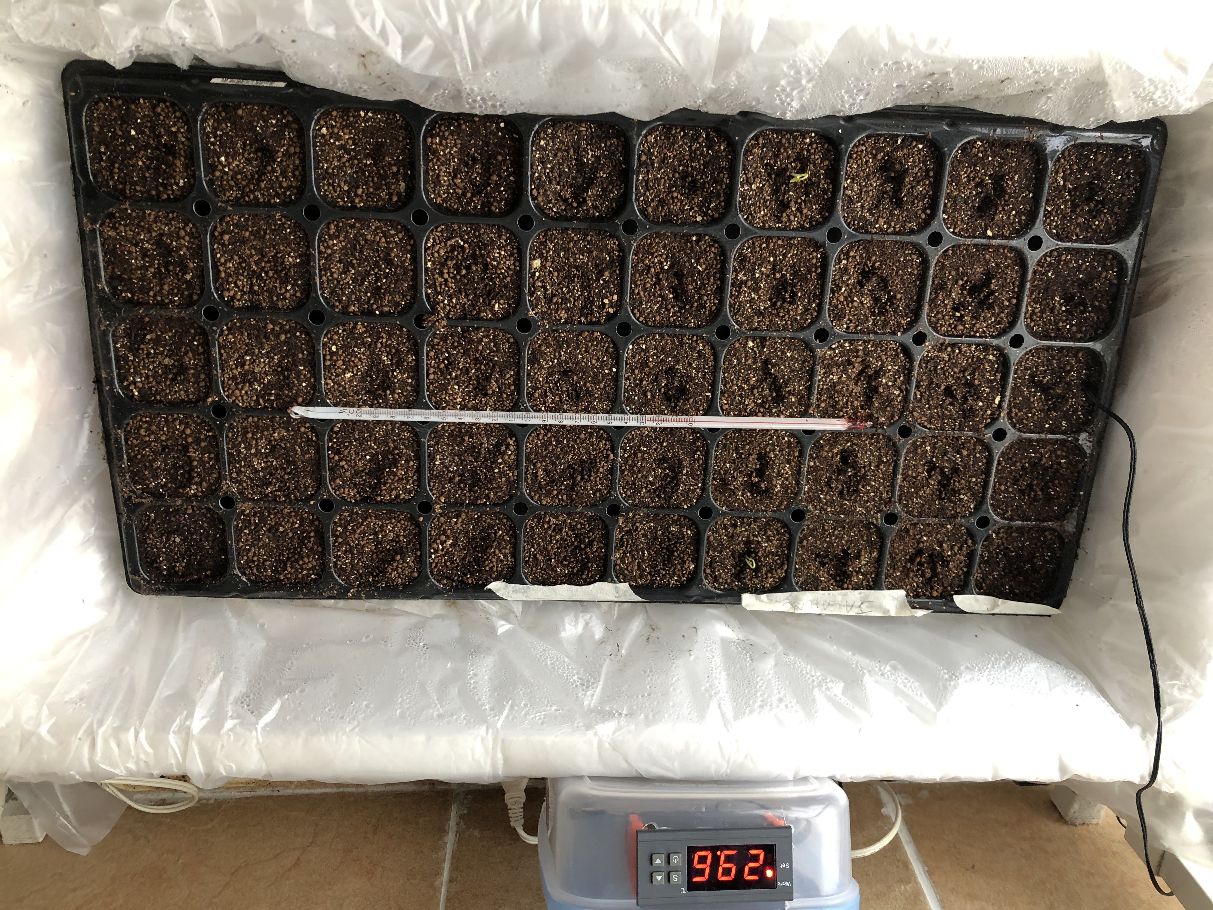 I tossed the old mix and bought some “expensive” seedling starter mix from the store. Glad I did as it’s a lot fresher no problems now. The first seedlings (jalapeño) just sprouted today. I’ll start venting the box out and drop the temperatures to 75.