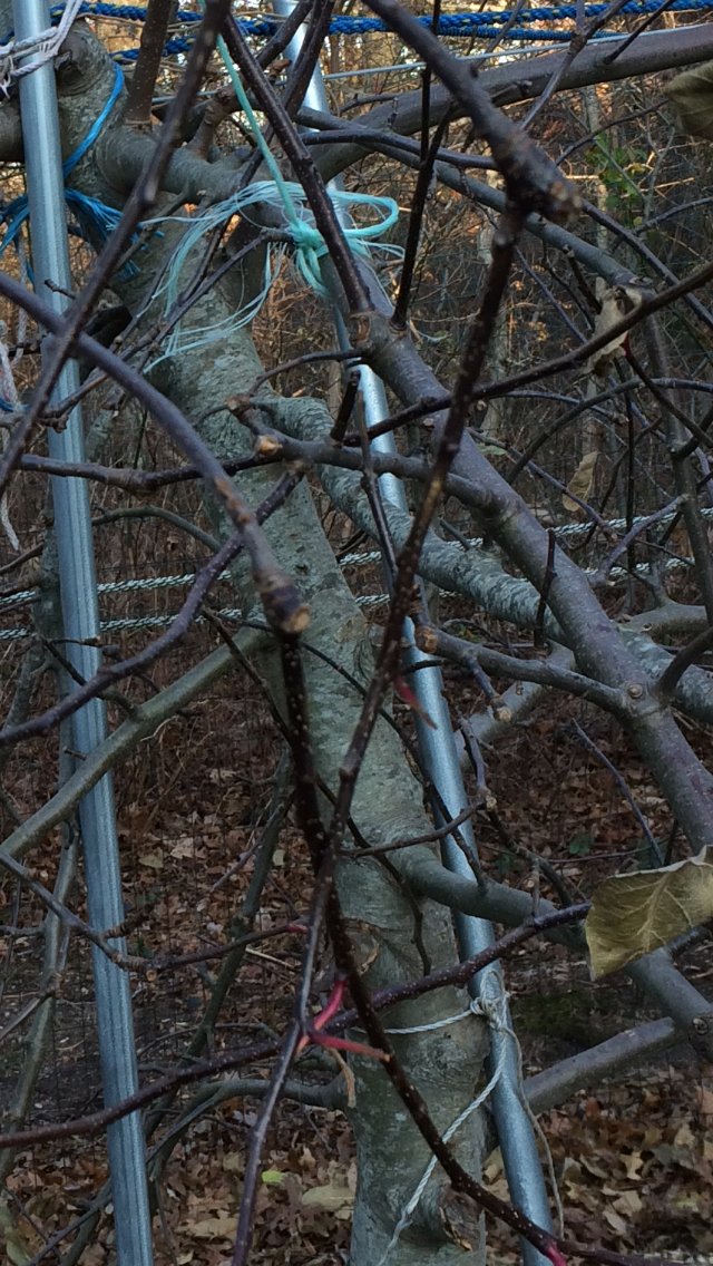 I am going to top my tall spindle trees to reduce height so that I can enclose the whole bunch of them.
