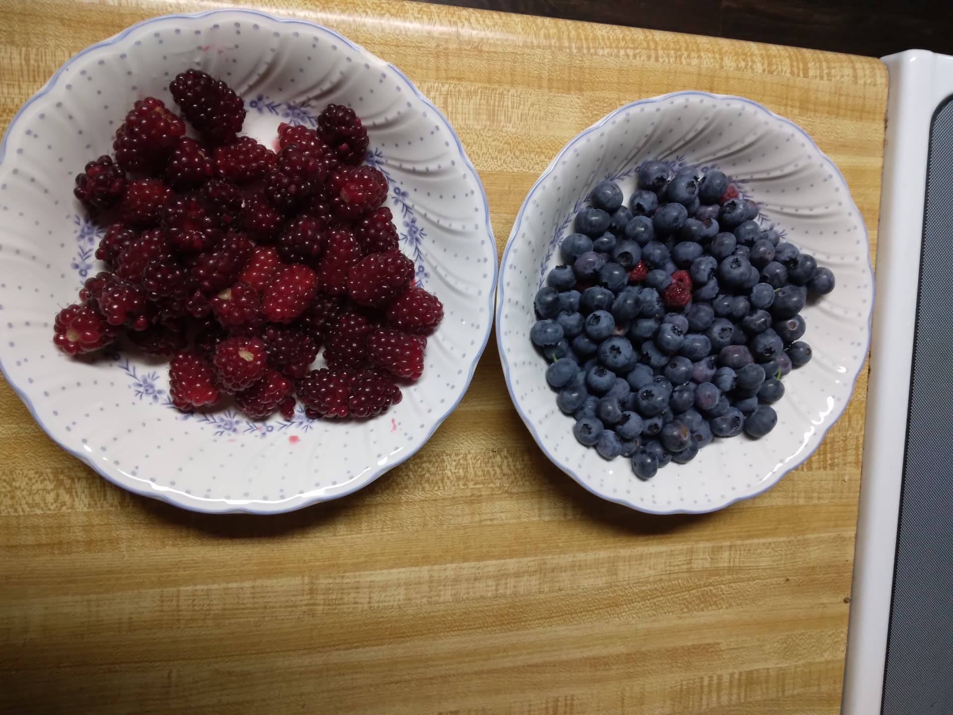 I would say the taste was almost wine-like. Lots of tannins, less sweetness. Letting them go to full ripeness didn’t help. They just taste a little off,not best of both worlds but I hope to cross them with some of my blackberries next year to get something more balanced tastewise.