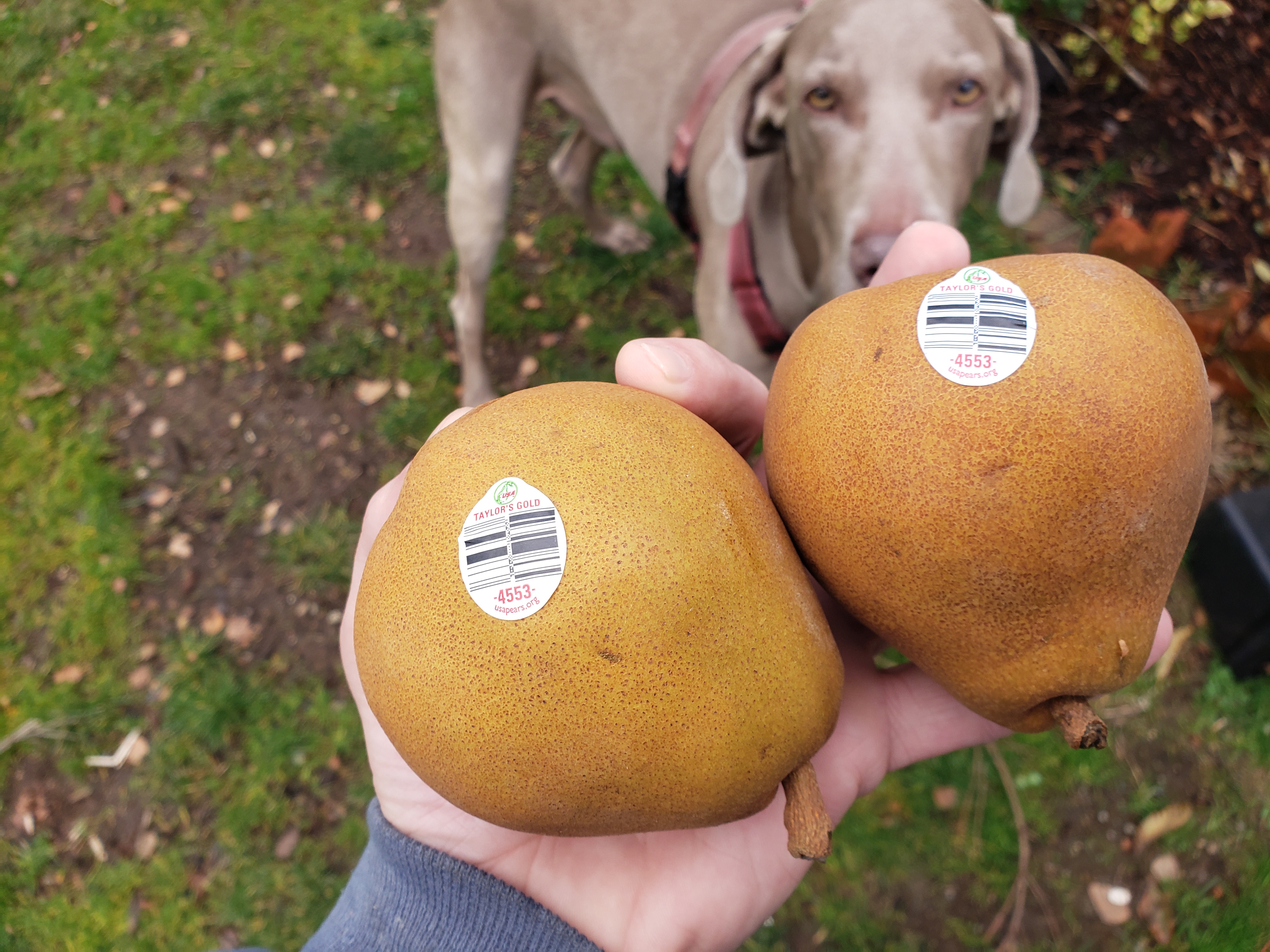 So I just added Taylor’s Gold to my GRIN order… to bark graft over Comice, which is delicious but so scab prone that the convoluted fruit is a disaster.