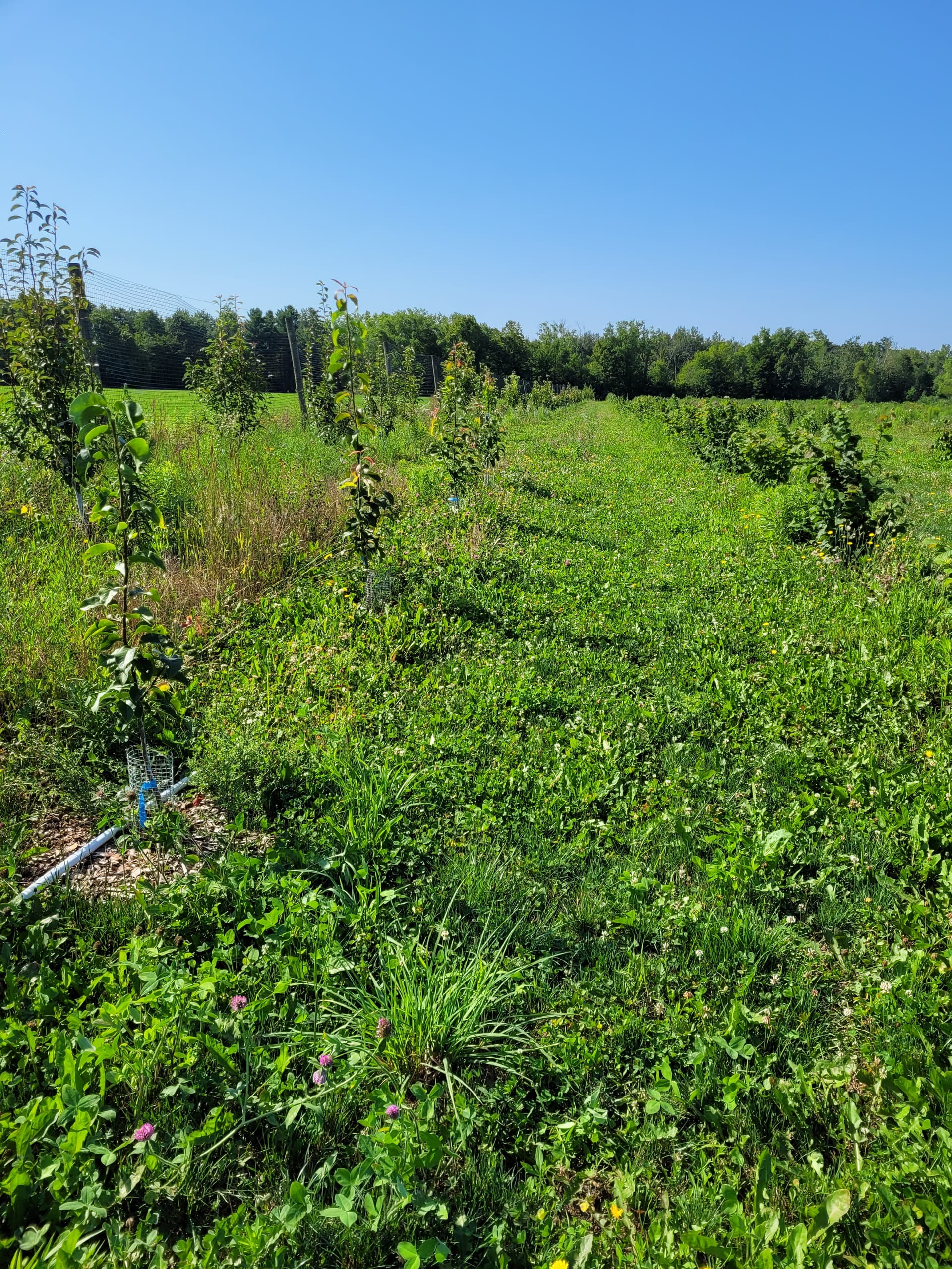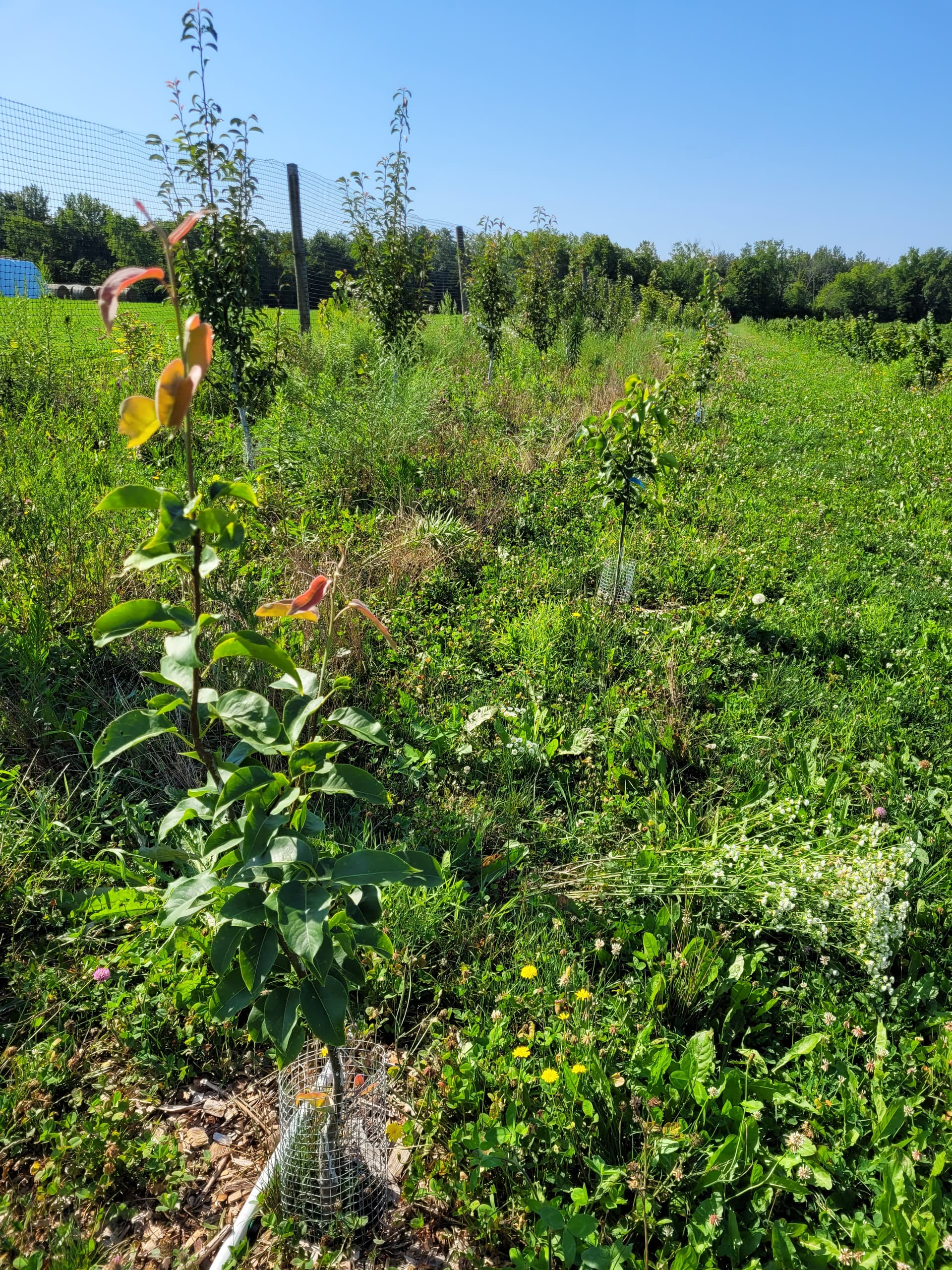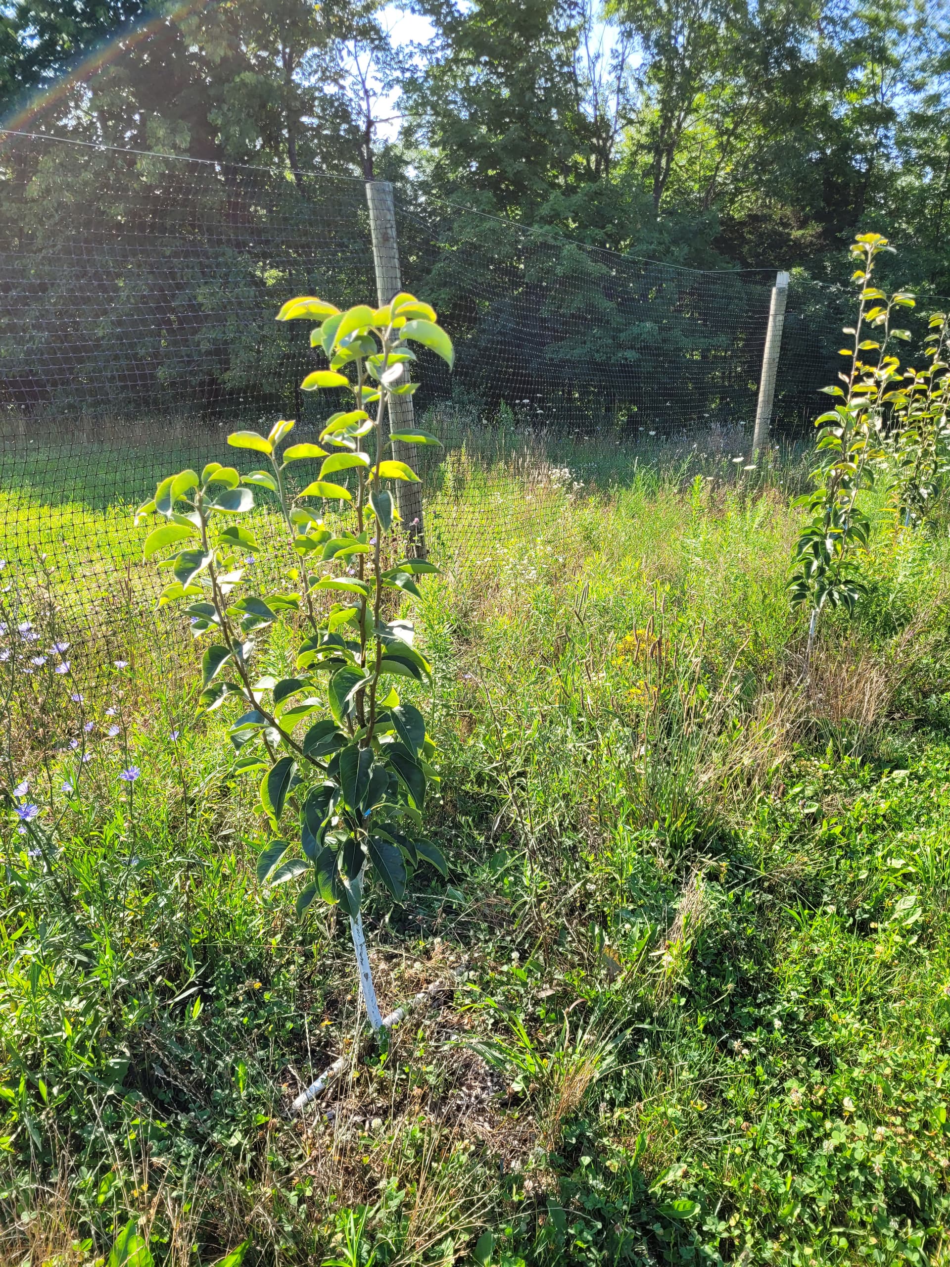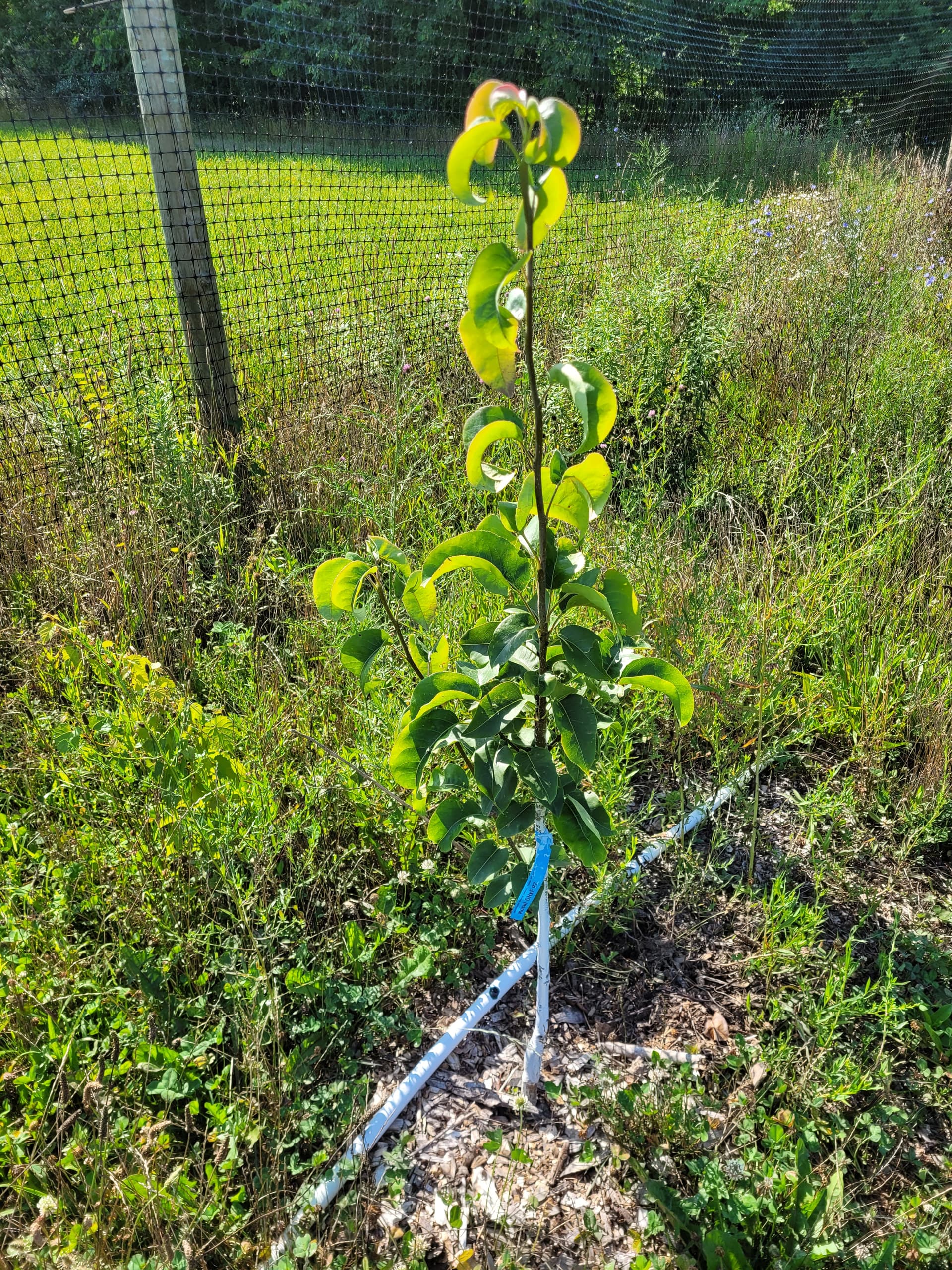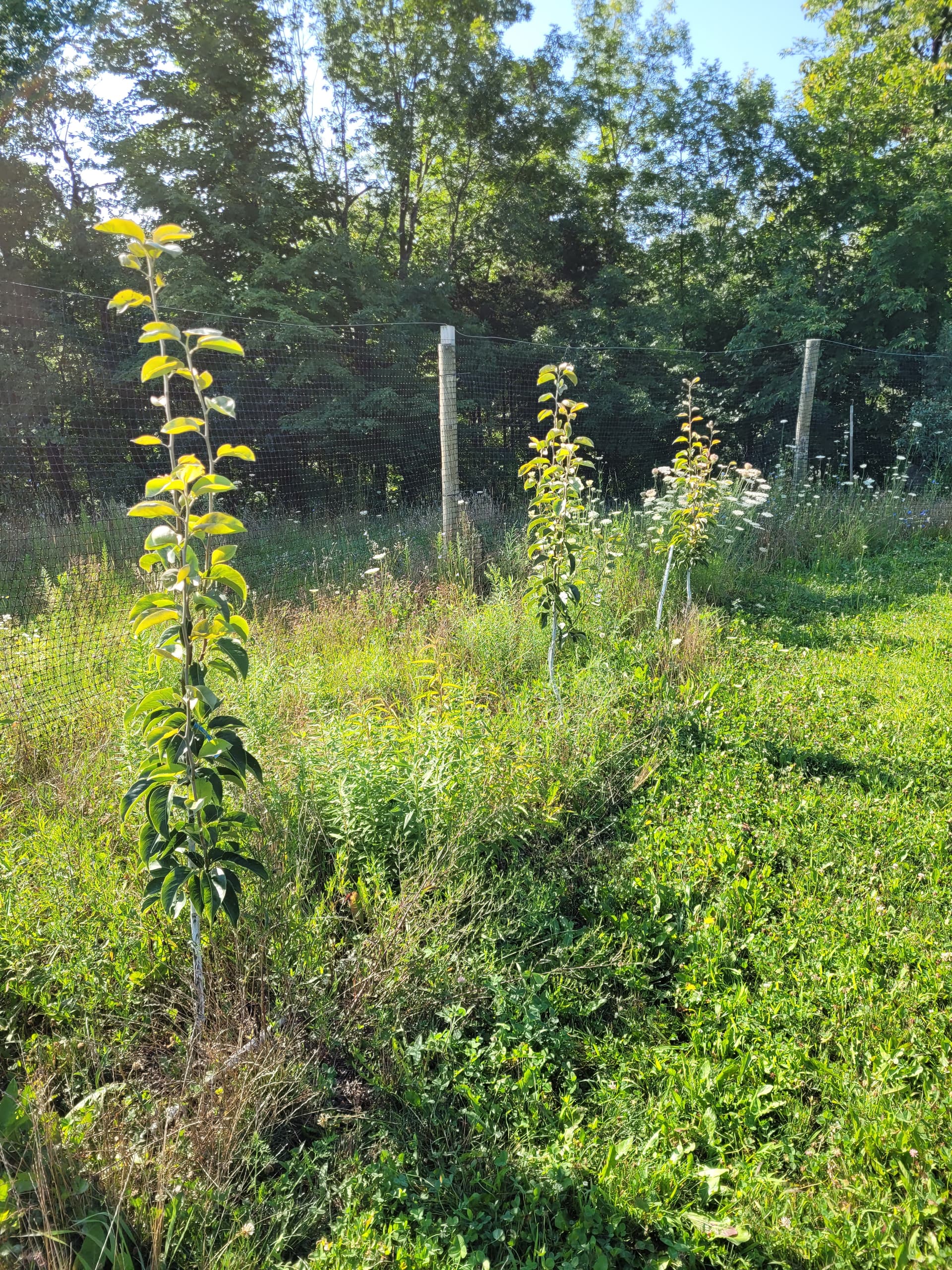 Here are some Asian pears, 2nd year growth. Hosui up front and DHoney. Pardon the weeds, theyre building topsoil right now.