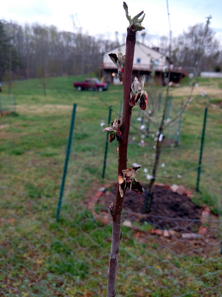 First strikes of 2018 found yesterday. One was blossom only on grimes golden that I pinched off, another on pink lady had moved from the blossom to the shoot, I pruned off. Hoping for the best.
