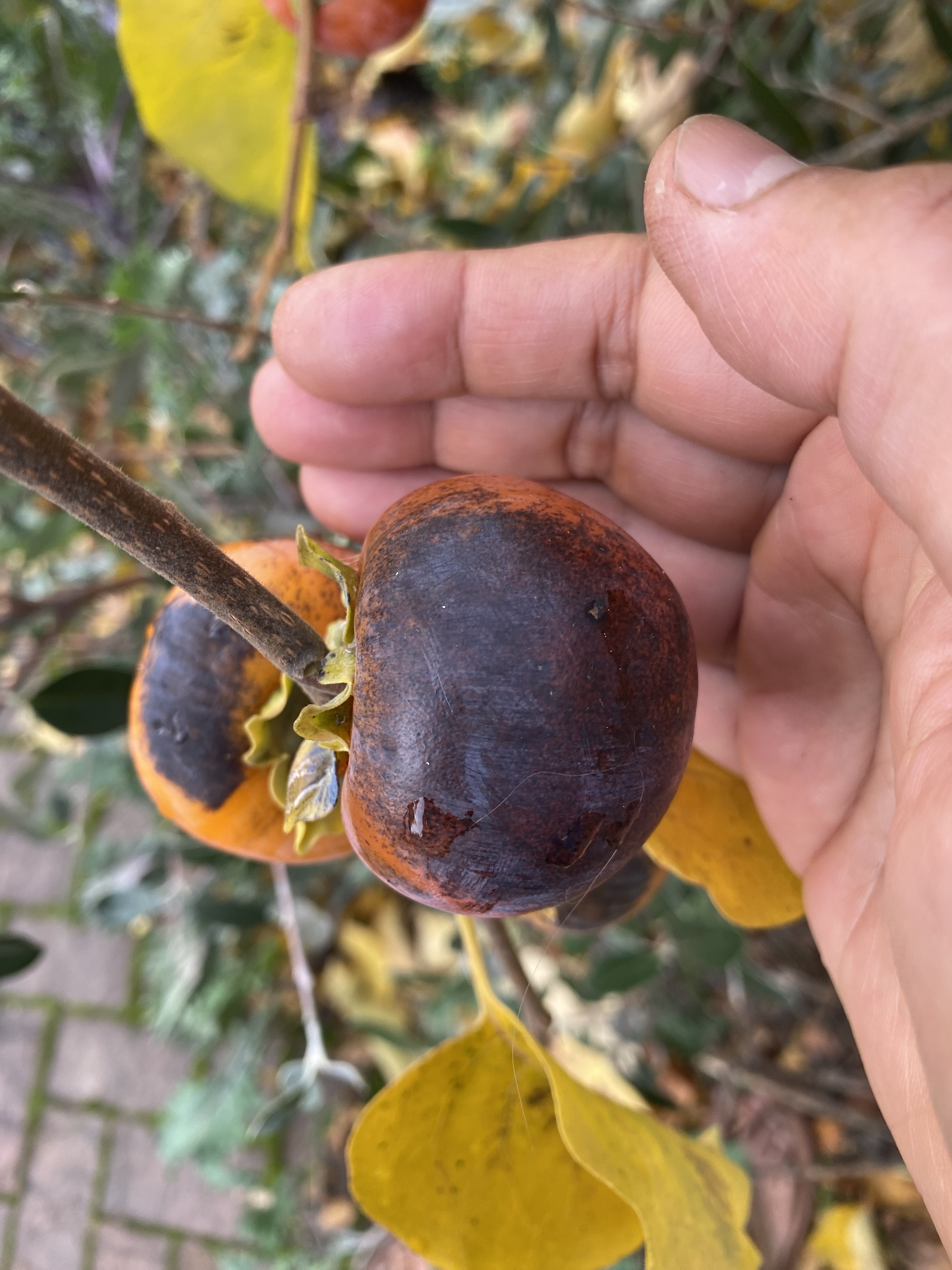Twig girdlers cut out a finger-diameter branch with 8 or so fruits on it a couple of weeks back. I’ve had them in a paper bag with an apple since, and two were soft enough to eat (I haven’t yet, so moved them to the fridge) yesterday.