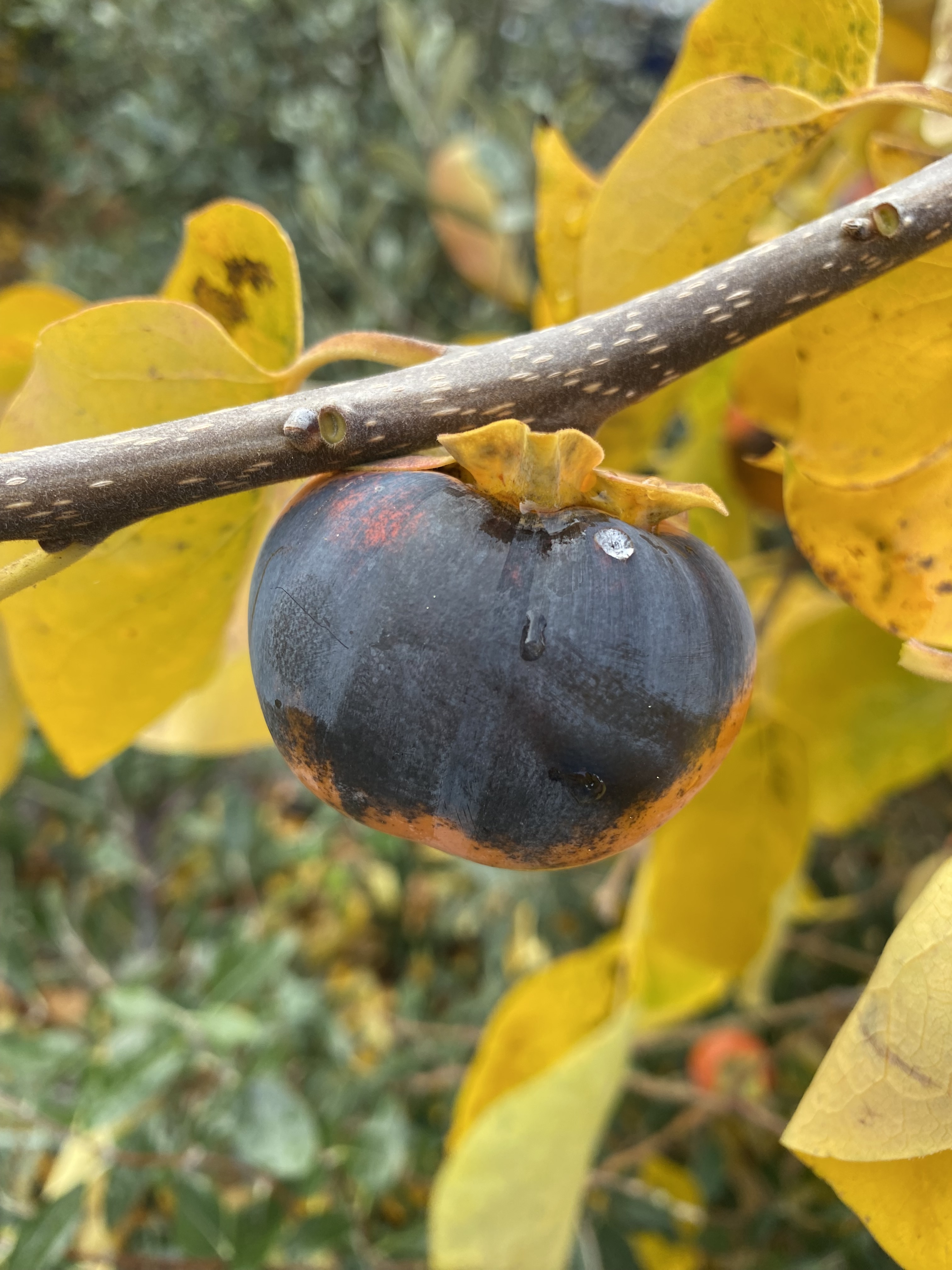 The only variety that i know which actually produces black fruit is the Kuro Gaki. You also see a lot of other varieties being advertised as black or blue fruited varieties (for example huk kam) but actually the blue/black color is created by frost when the fruit isn’t ripe yet or something… I can’t explain it that well but a hobby collector told me something like that and that those fake/not ripe/black fruits are actually the worst fruit quality you can get… I have two Kuro Gaki (those actually get naturally black skin when they ripen even without frost and loosing fruit quality)here in zone 6b but I will wait several years before planting them out in a warm spot.