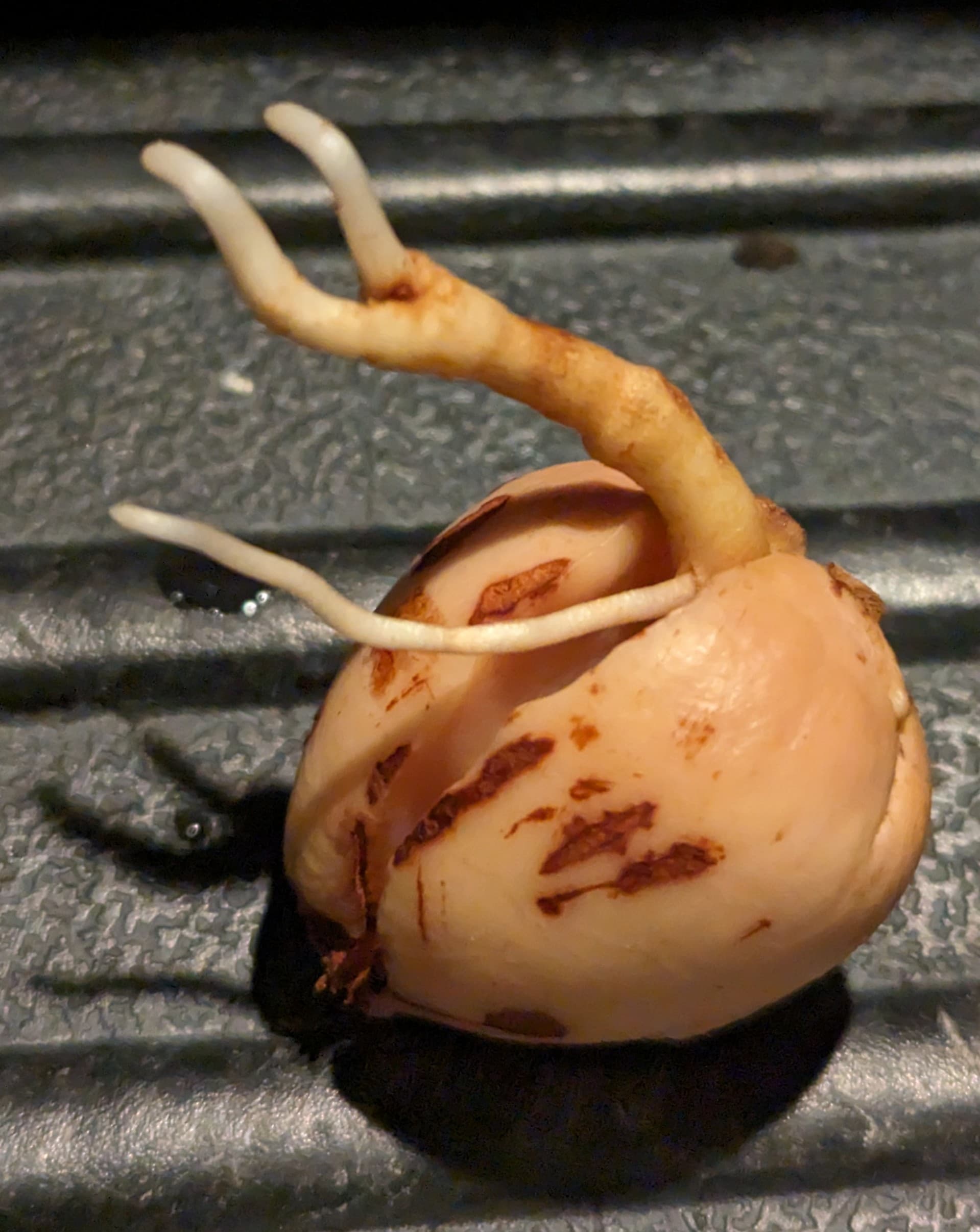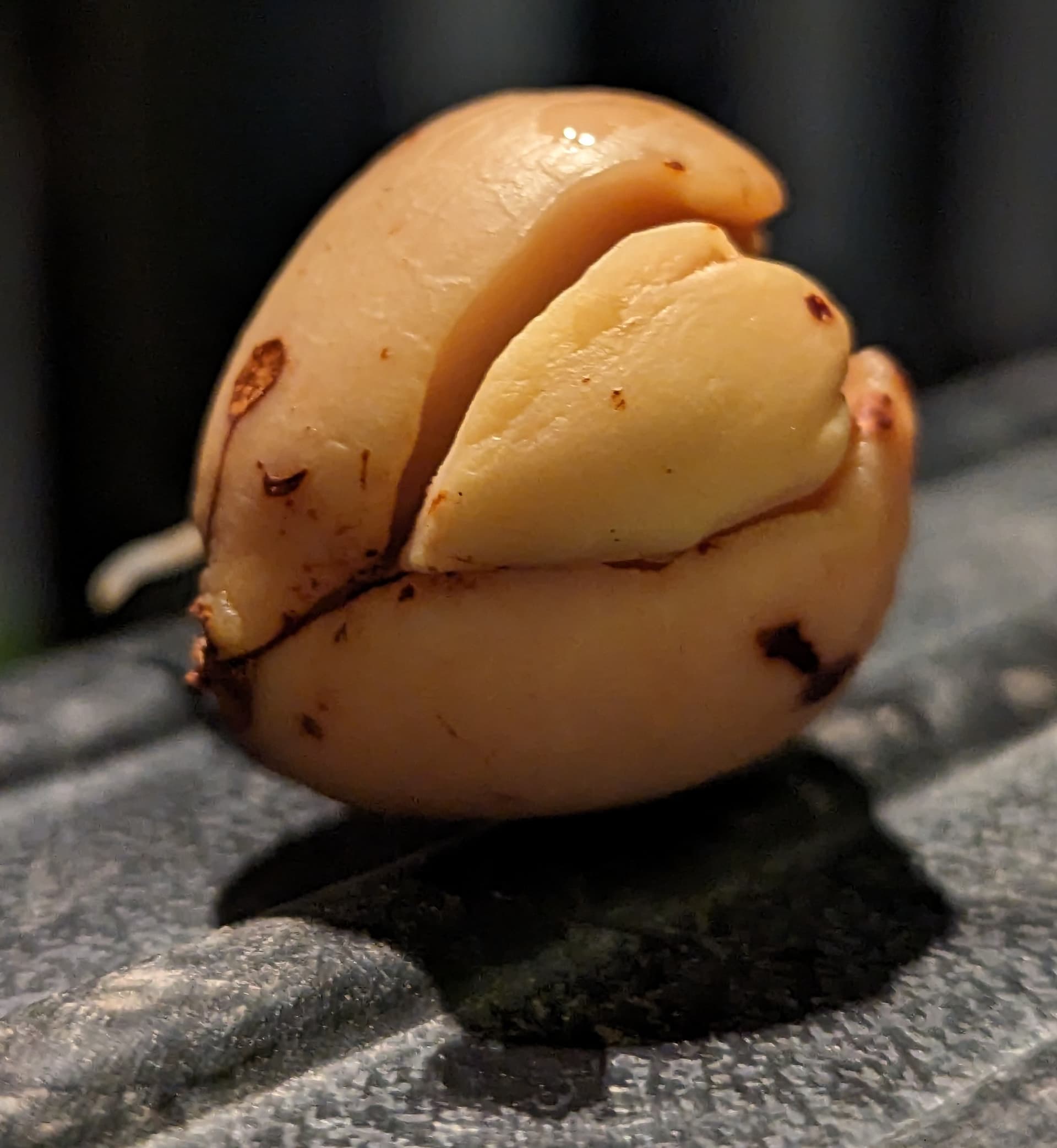 Those bags are actual Hass fruit (or close enough to be labeled as such) from CA, but that were too small for even the “small Hass” grade, so they get rebranded as “single serving” avocados. Many of them have absurdly small seeds, so I was mostly just curious whether they are viable or whether they have any strange mutations to go along with the tiny seed. This is the most mutant-looking one of the bunch so far: