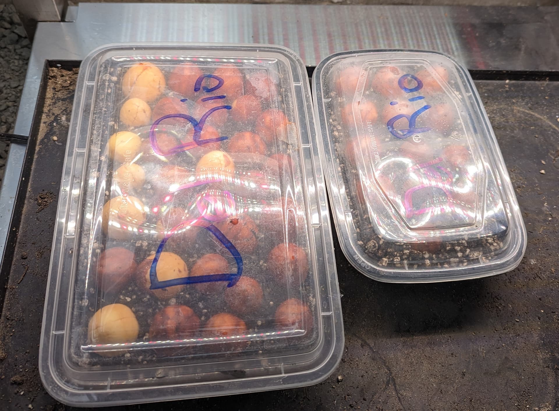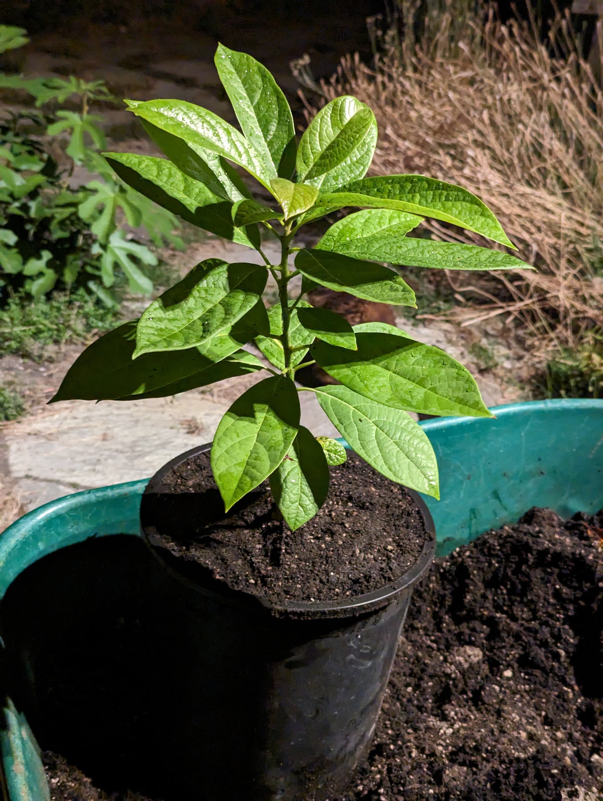 These are not serious specimens for the project, as they are very unlikely to be hardy enough, but I figure I’ll give them a chance to prove themselves. The large ones are Reed seeds, the smaller ones are from a “tiny” Hass bag: