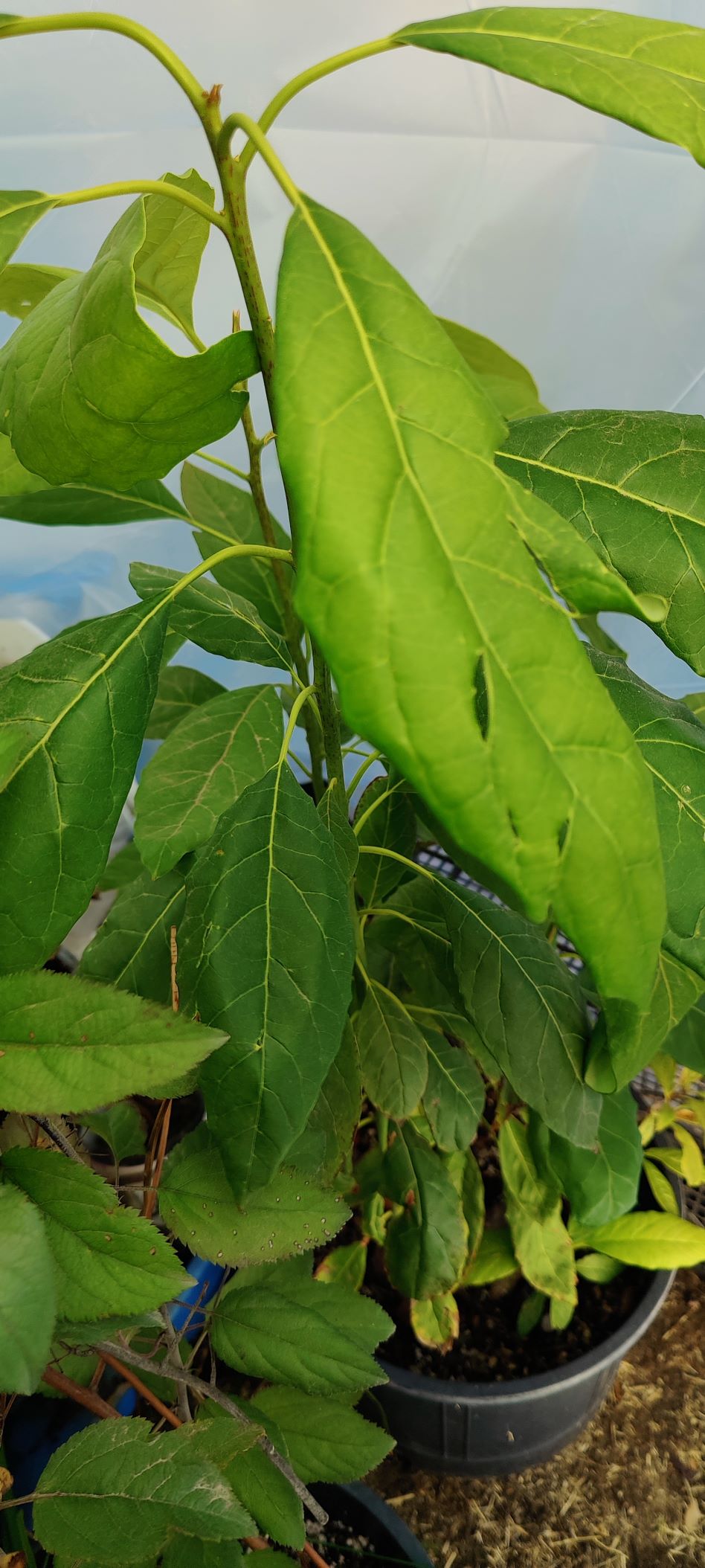 I bet Haas from Traded Joe’s, since that person shops there quite often. Well I guess I have 3 Haas seedlings to join the party. I feel like they’ll do excellent in the greenhouses here since the coldest reading I get is 37. My main source of heat are huge rain barrels, though I also have a biogreen 2800 watt, 220V heater that kicks on if temps flirt with freezing. That only happens when we drop below 25, which is fairly rare, maybe 5 nights each winter. So far there is no need for any artificial light despite the interminable cloudy conditions from November until March. All the avocados seem quite happy.