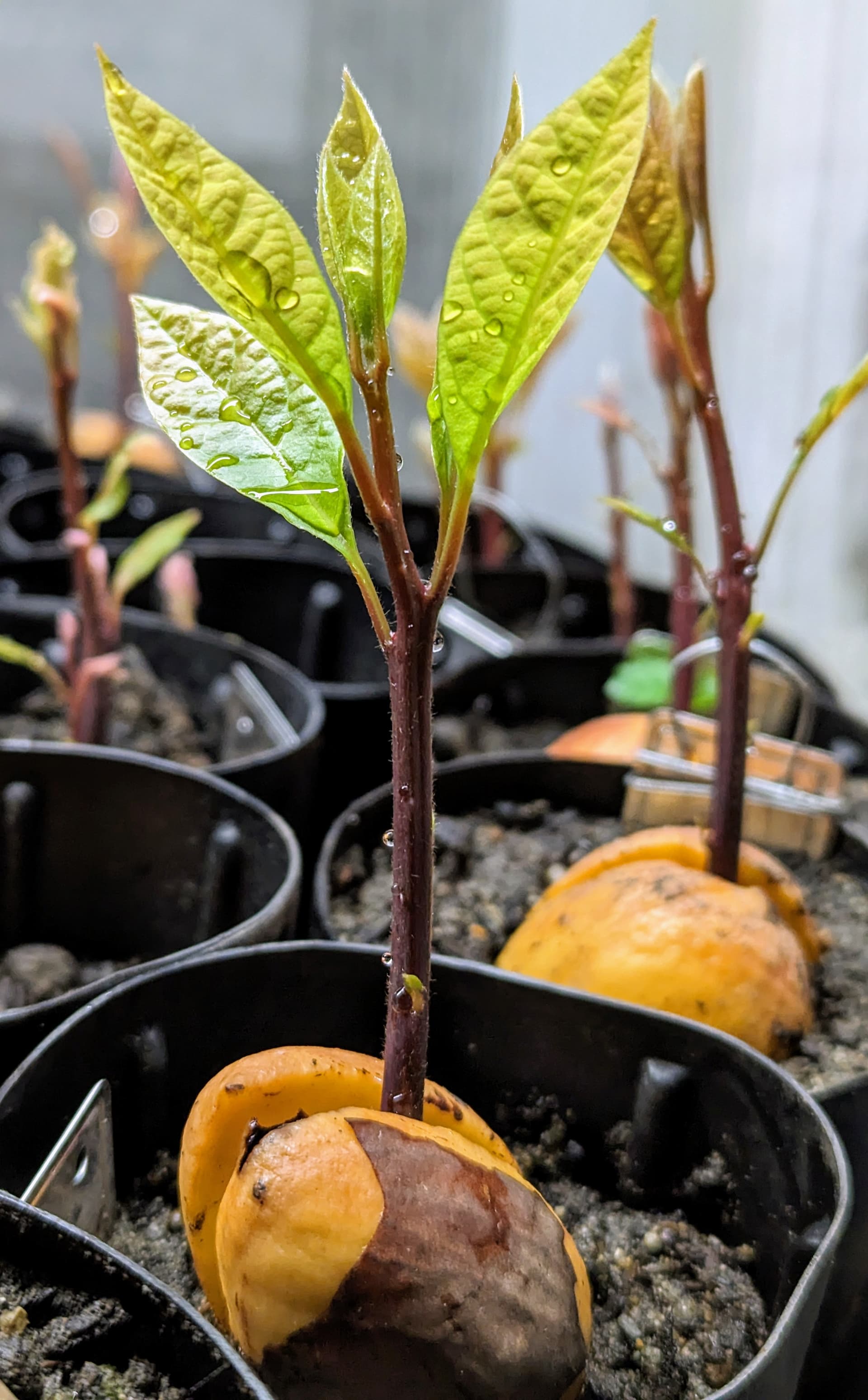 Had a great tree distribution this weekend, so far I’ve handed out 43 trees this year, with about a dozen left to go. Next year’s trees are liking the recent sunny days, you can almost watch them grow. Here’s #390, a seedling of a tree in Gainesville, FL that is believed to be grafted with “Joey,” though not confirmed: