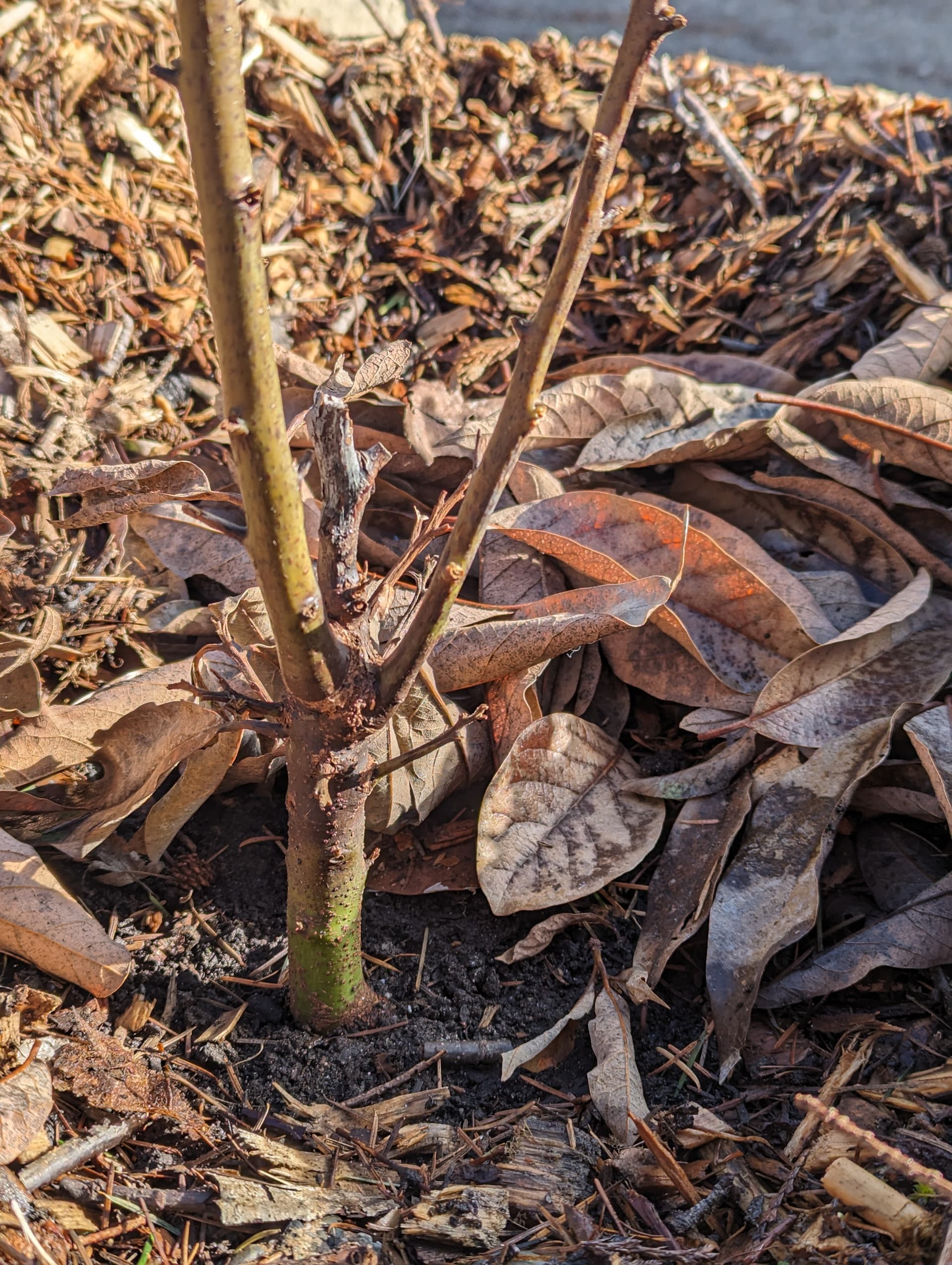 Just did a survey of some of the trees that were unprotected or only minimally protected during the January freeze. Definitely looks like a few will regrow from around ground level. Here are just a few of them. The links for each of these go to their profile page on the project website, which gives some background on each of them: