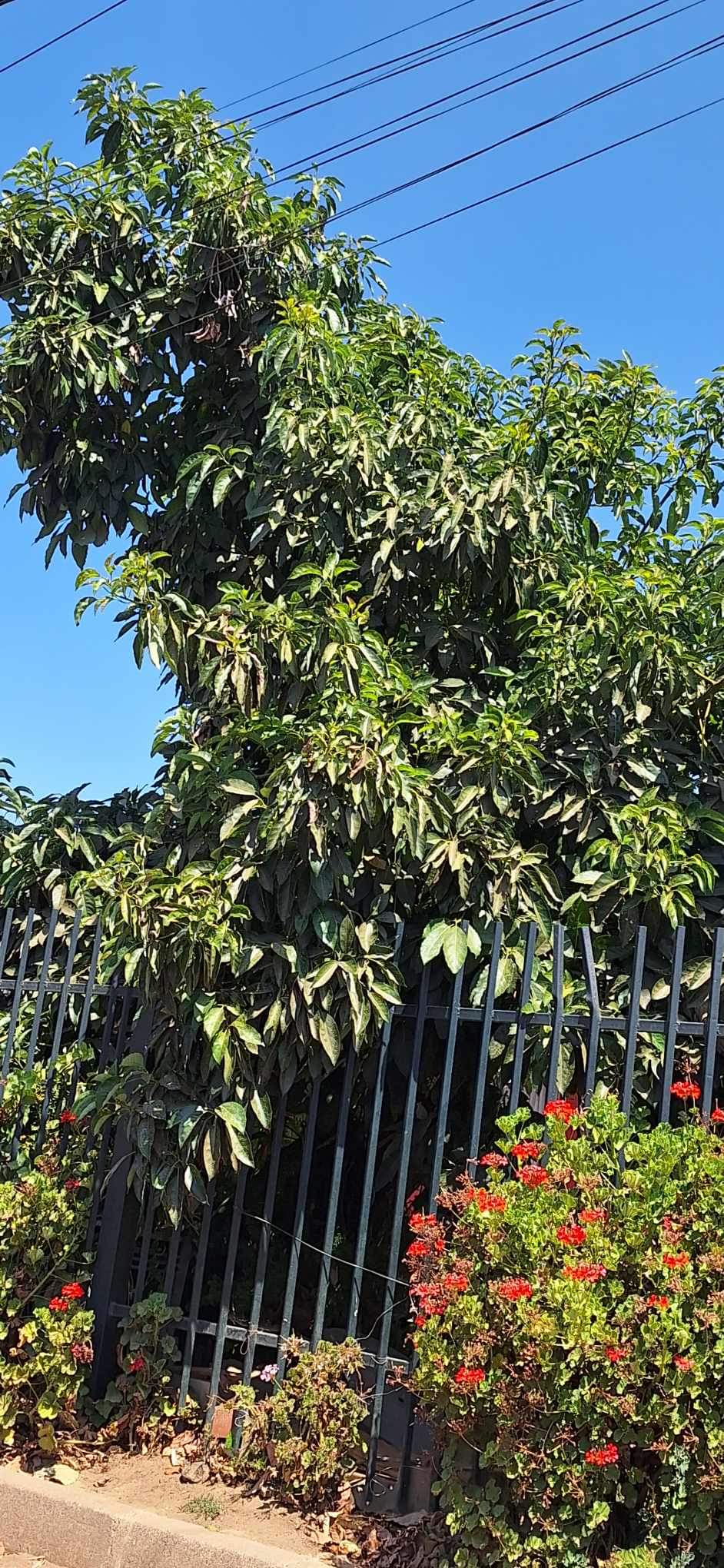 His neighbor says that they’re 15 year old Palta Negra de la Cruz tree. (Palta is avocado in Chilean spanish) Apparently they defoliated last winter, but it hasn’t seemed to slow the trees down much: