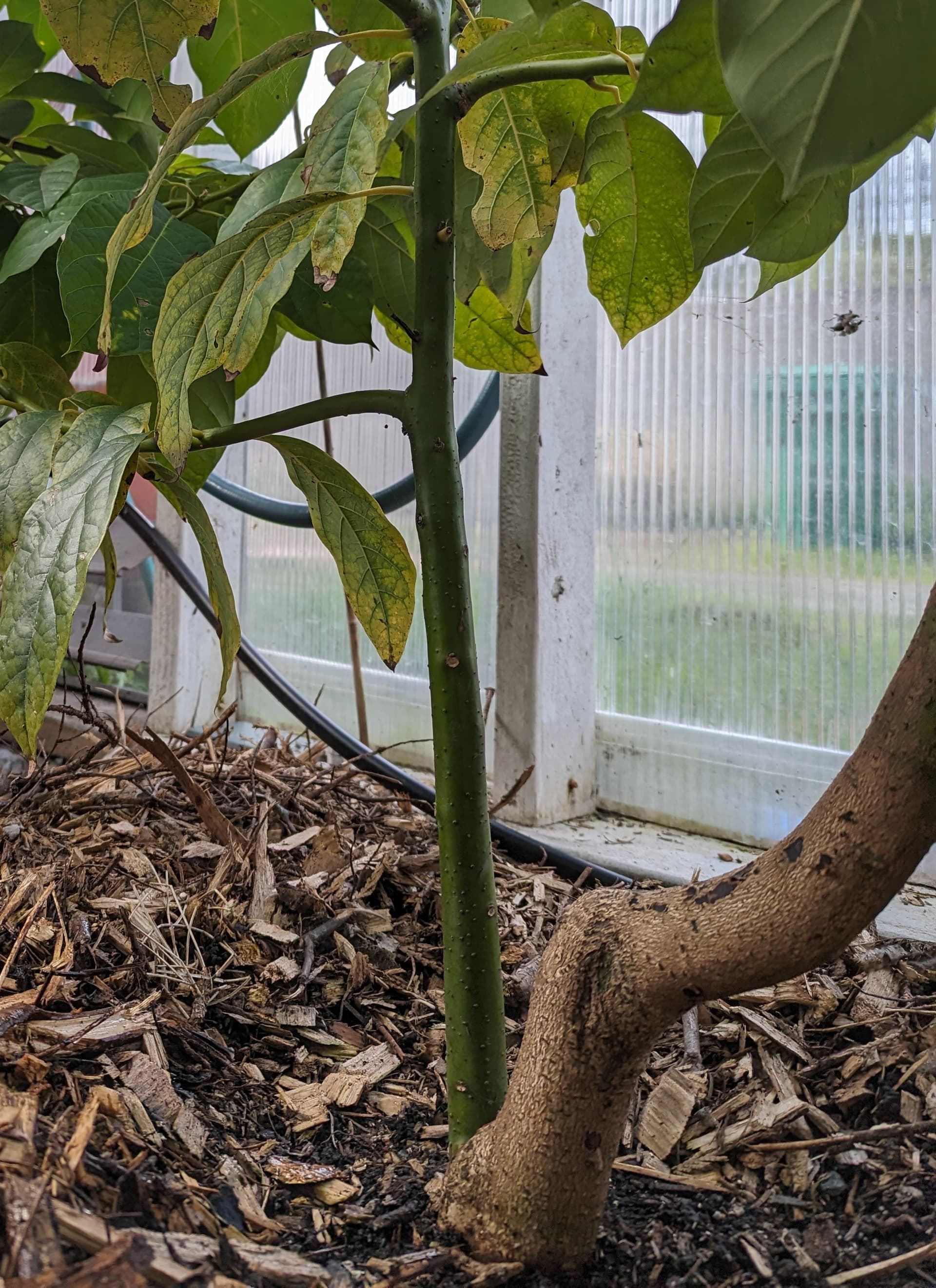 Oliver told me that the rootstock was from the summer 2020 crop, so that means it is flowering in under four years from seed. Very precocious for an avocado! He wasn’t sure of the seed parent, since he was just sprouting seeds from all their trees together for rootstocks, but he said statistically it was probably from either the Del Rio or May cultivars.