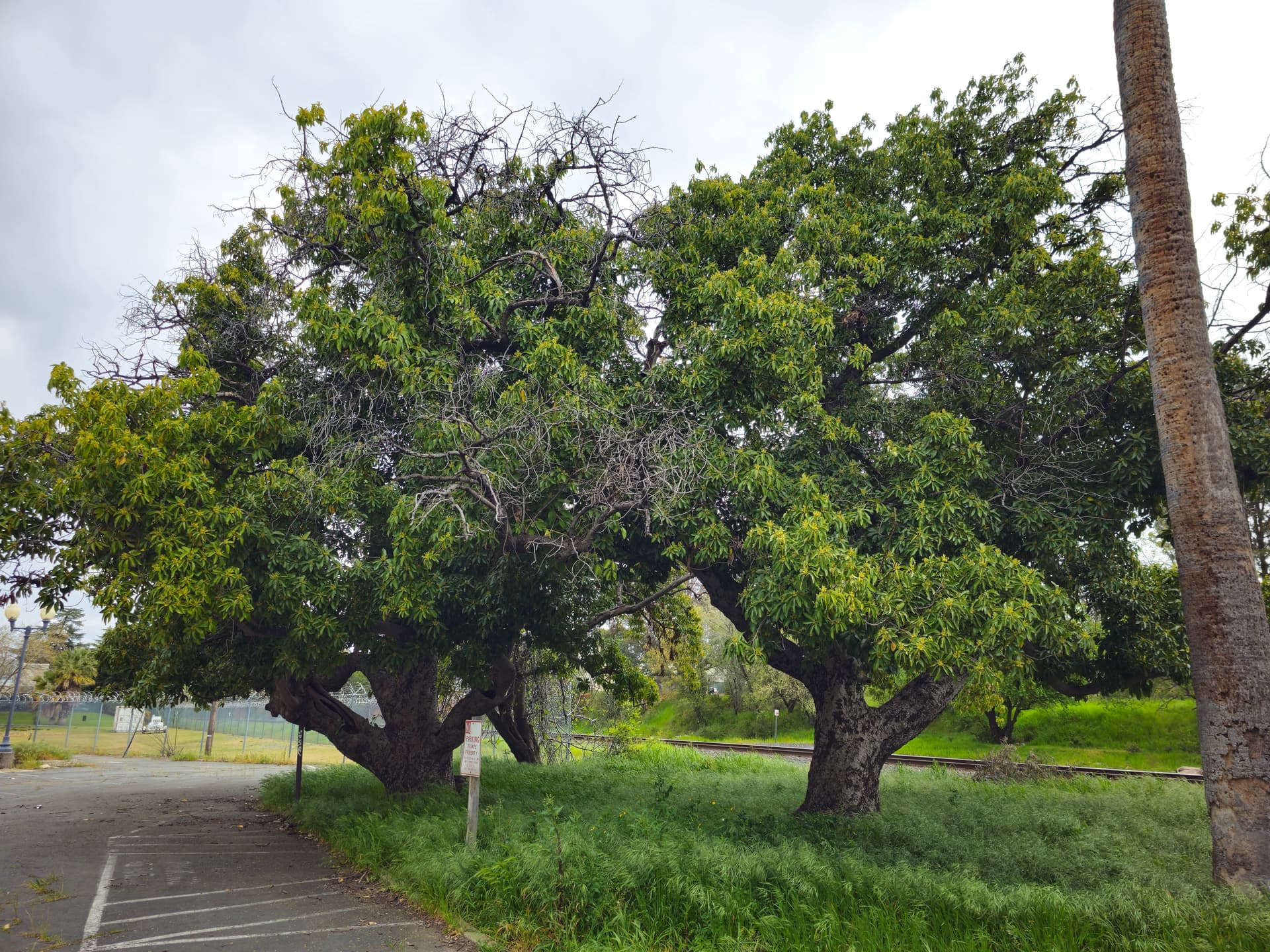 For anyone interested in my multi-grafted avocado trial in NW Tucson, here’s a brief history, followed by an update: A 1-gal Wilma purchased in 2012 was planted in the yard in 2013. It grew vigorously and fruited in 2015, but after a few years I wasn’t satisfied with the fruit and in 2021 I started grafting on other varieties. In 2023 I cut it back mostly to stubs and added many more varieties. Out of a total of 44 different varieties since I started grafting, 25 range from “recently dead” to “doing great.”
