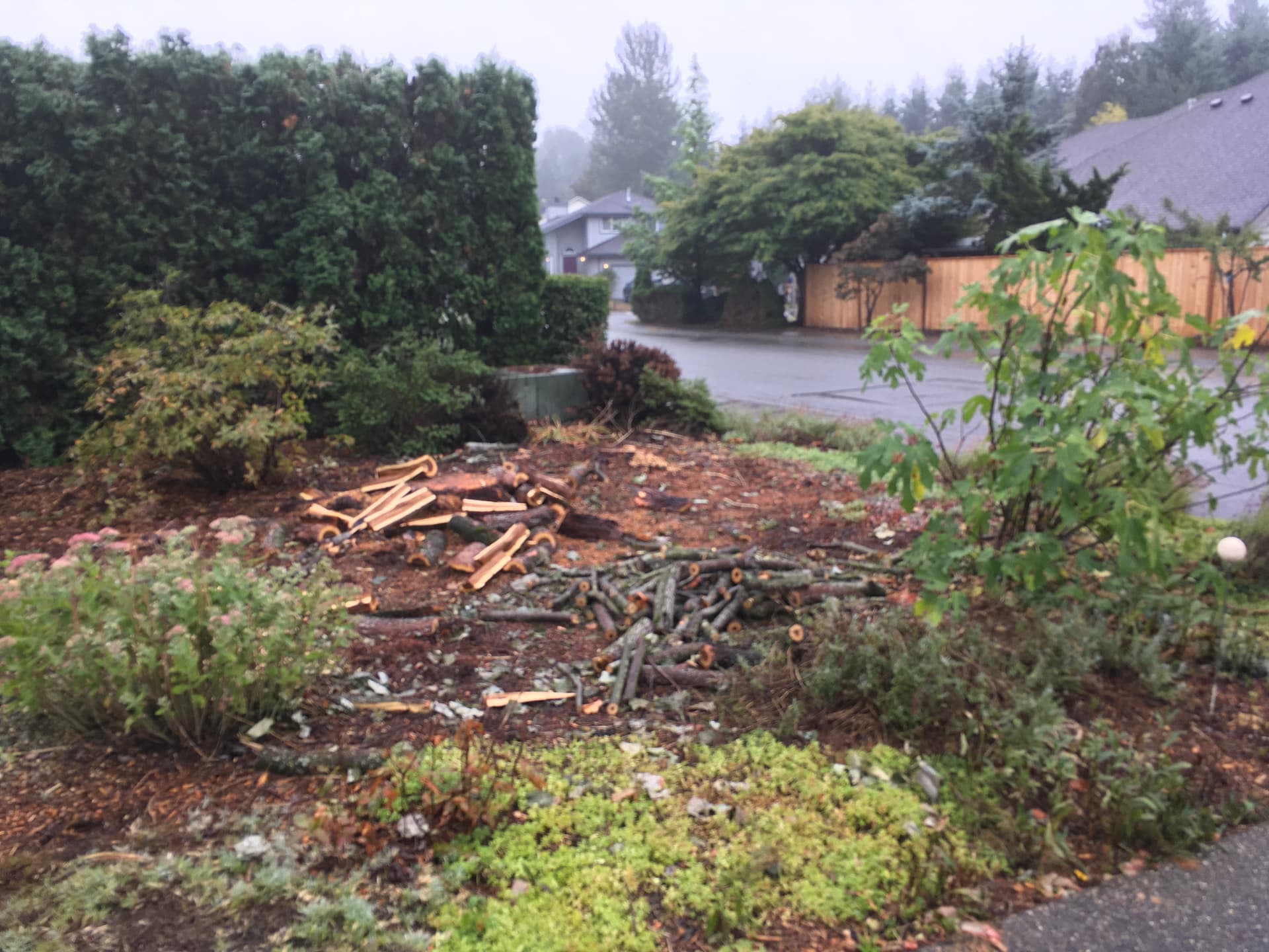 Other stump covered in wood chips