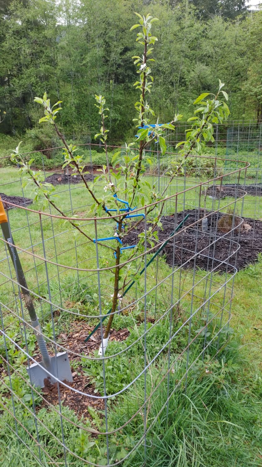 I have a mix of welded wire and cattle panel for individual trees. Welded wire is easier to set up and less expensive. Cattle panel is easier to manage.