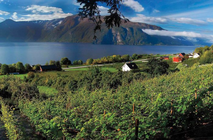 “The fjords reflect sunlight back on the vineyards,” he says. “The mountains accumulate heat and provide good drainage, since Norway gets a lot of rain.”
