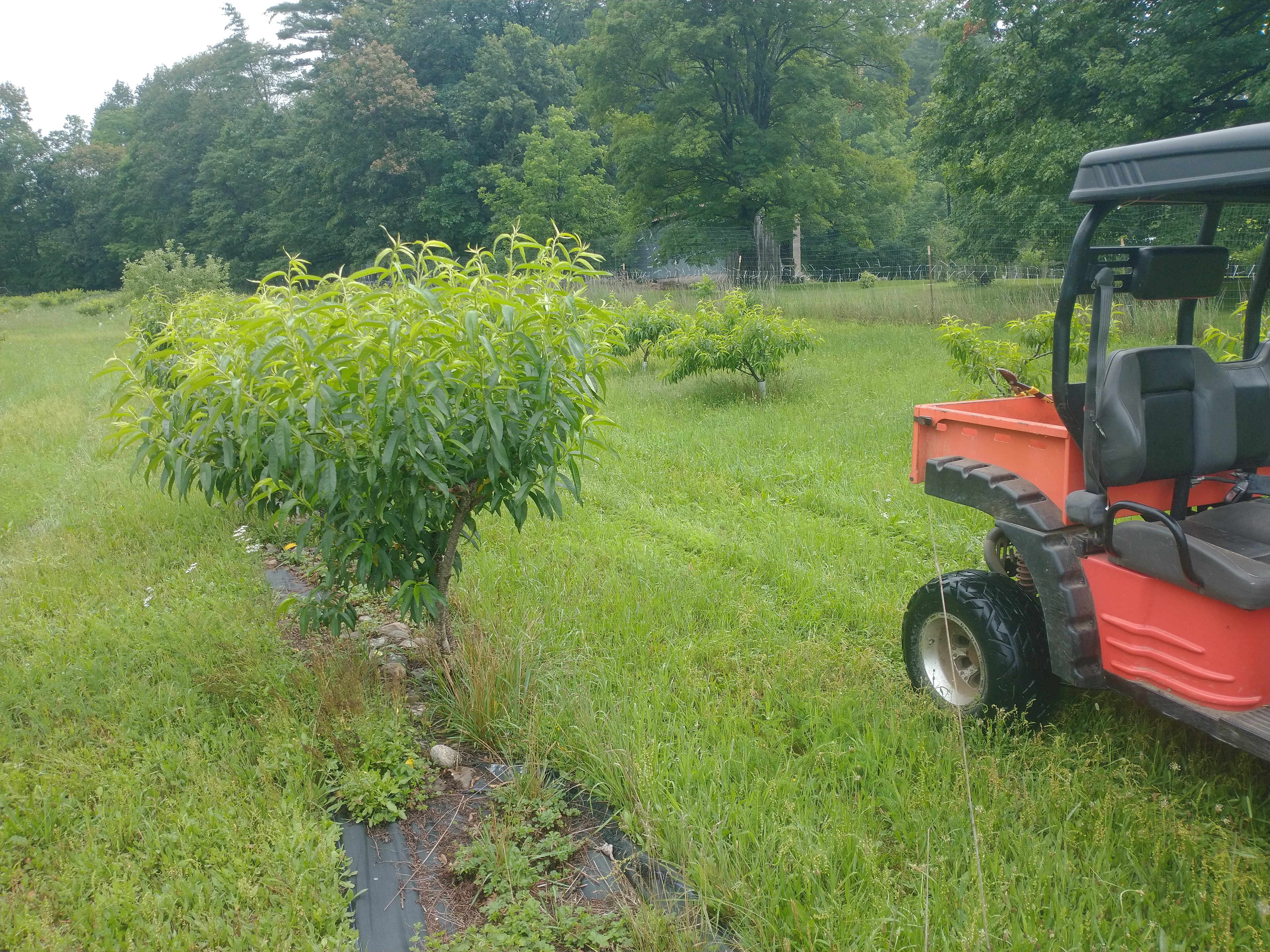 Those are some serious challenges, in addition to the distance from the orchard. I can see why you haven’t sprayed for weeds, especially if you are still getting some growth on the peach trees… I can also see why you have used barrier methods and physical methods for weed control. I’d probably do the same in your shoes.