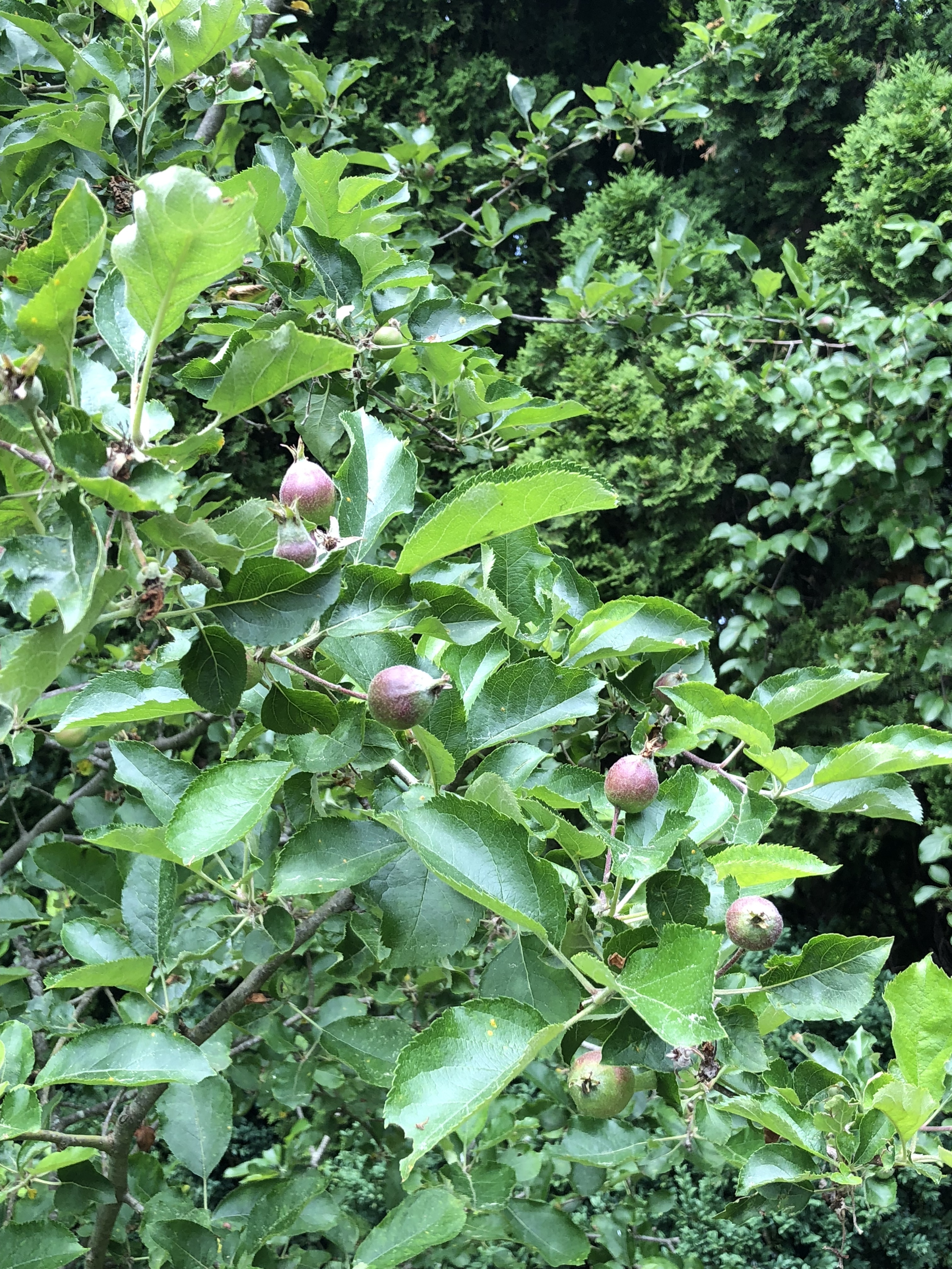I really thought I was done with thinning fruit by June. Turned out, there were too many apples and A. pears. Thinning now is rather late but I need to save those branches.