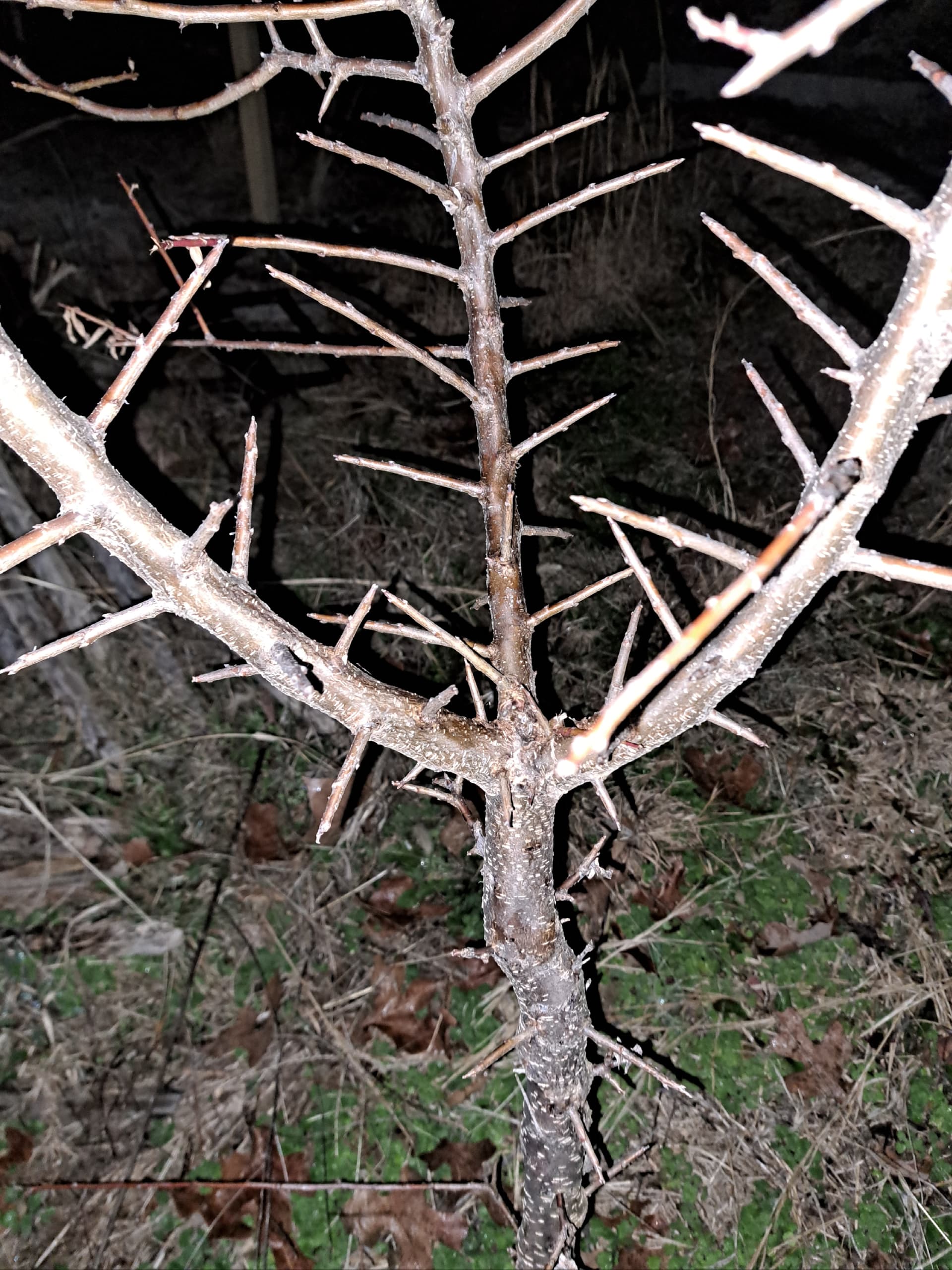 This morning the weather cleared here so I could get a good pic of my three year old Sweet Treat graft. It actually resembles your pic and has similar growth habits, so I was mistaken about those thorn looking stub branches. Perhaps yours is what you think it is after all. Once it fruits it should be easy to confirm, just thought you might want to know I was wrong about my comments. Here is my Sweet Treat graft I got from Vincent. Once it leafs out in Spring I can send you a foliage comparison shot. Take care and Merry Christmas