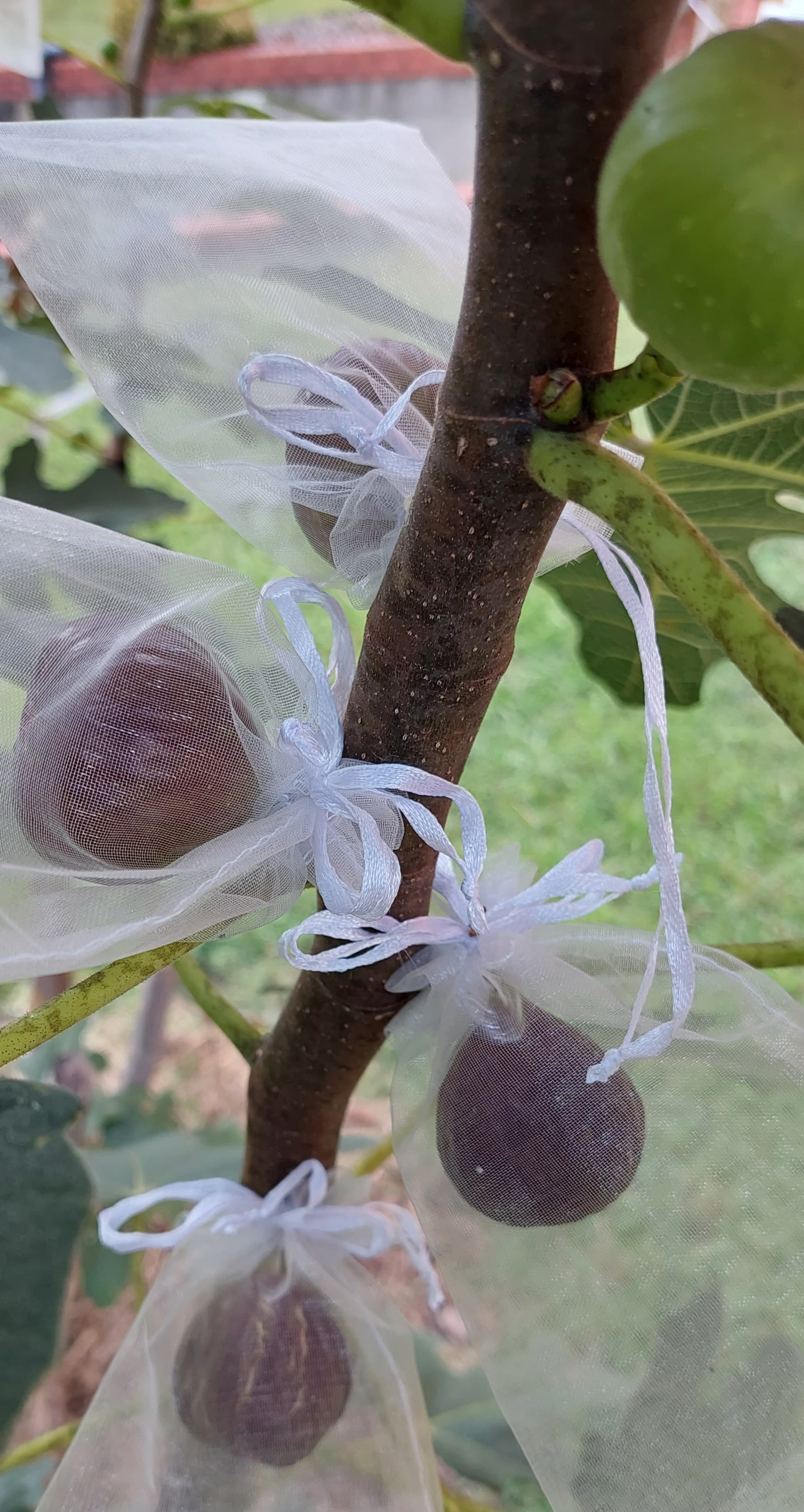 I tried spraying our figs with Bonide Fruit Spray this year and seem to have had success. I should mention that out fig trees have been growing for 18 years. This is the first year that I sprayed. I have not told my wife. She runs outside every day to pick a few figs…and then claims that the figs are growing because she sprinkled anti-ant granules around the base of the figs. We have not tried using mesh bags. I am just grateful that my wife is smiling.