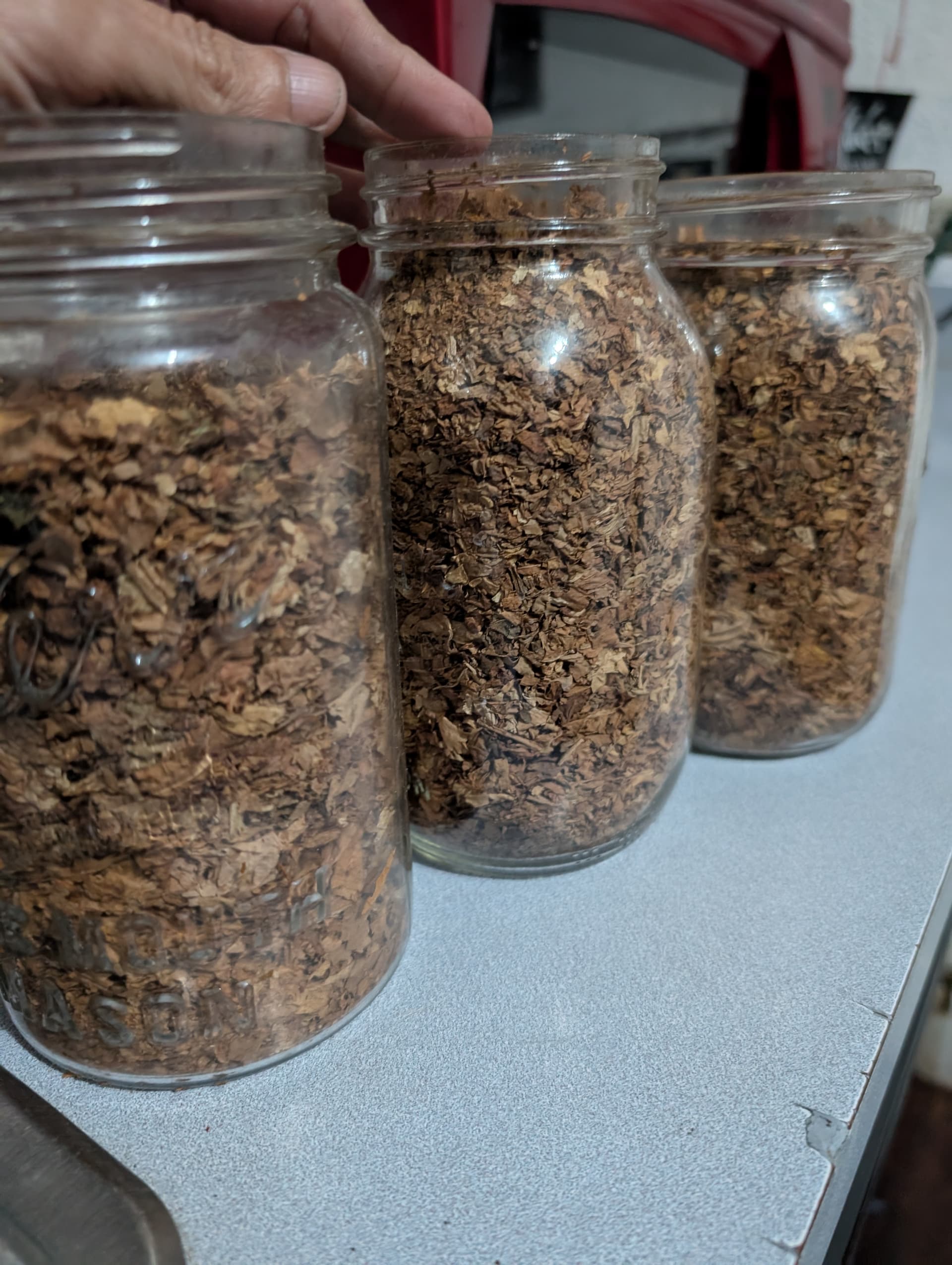 last year’s crop is now getting smoked, aged since last fall, cased then shredded, in quart jars. i got 3 jars from that test patch and will have much more this year.