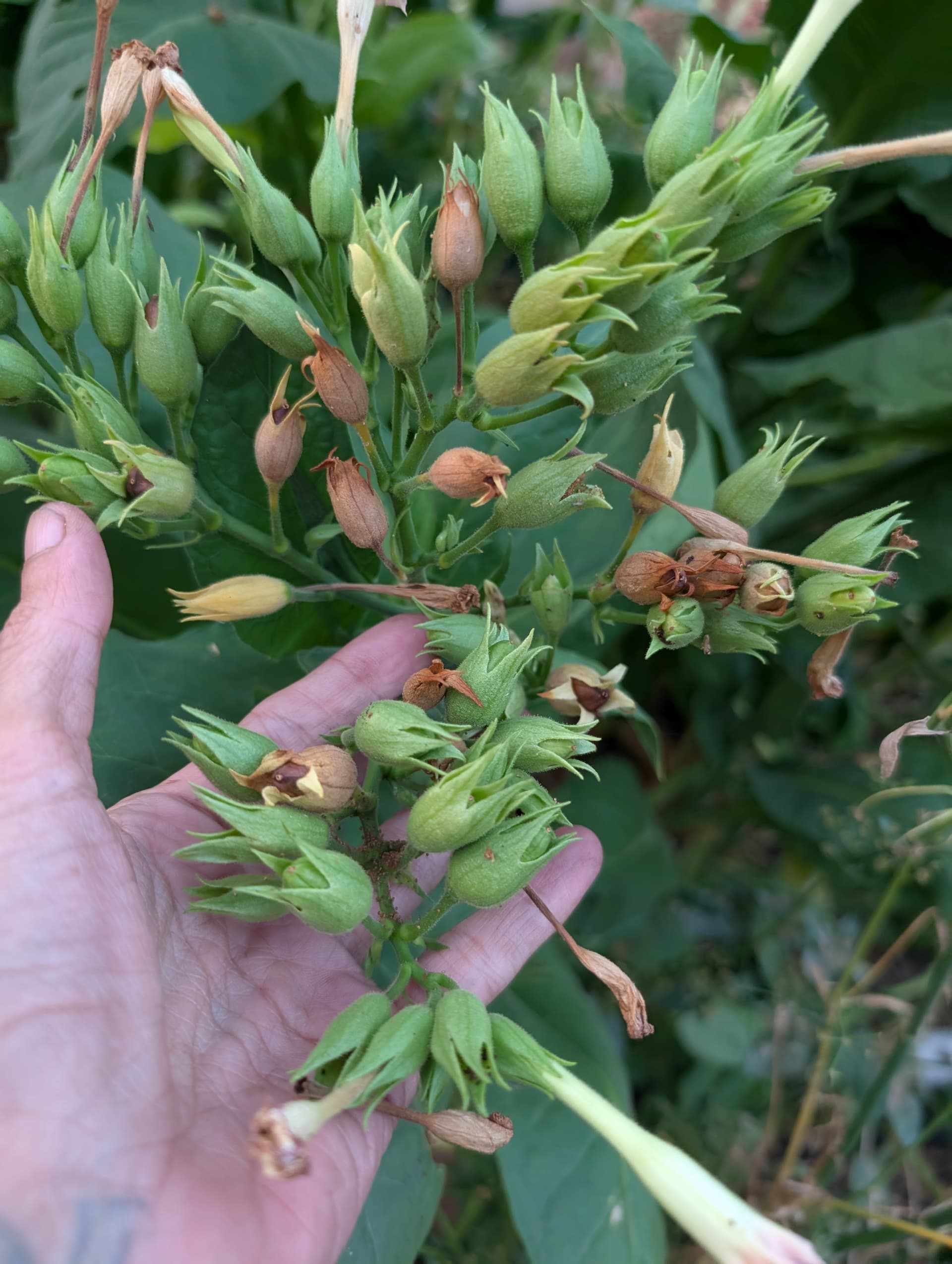 seed collection- i pull the brown heads and dry, then jar those up for next year. i think next year I’ll do a few of each variety I’ve got seed for, plus a lot of this landrace/crossed stuff I’m saving, and see how it is
